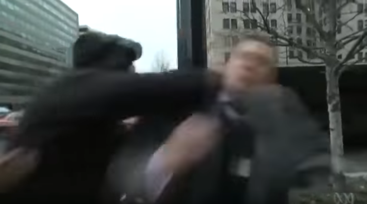 The video subsequently shows the assailant running away and Spencer turning around and touching his head where he took the punch.