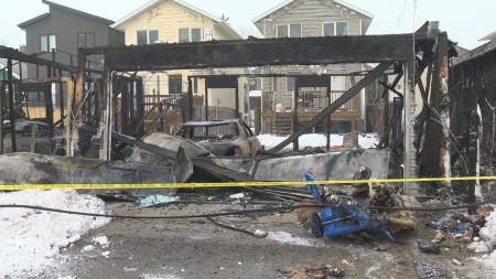 Regina fire said when crews arrived on scene, two garages were engulfed in flames and caused heat damage to nearby homes and siding.