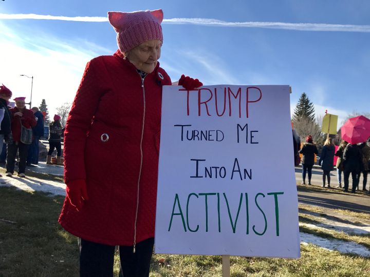 Elisabeth Pfeffel, a 94-year-old woman, says she’s never attended something like this. She says Donald Trump turned her into an activist.