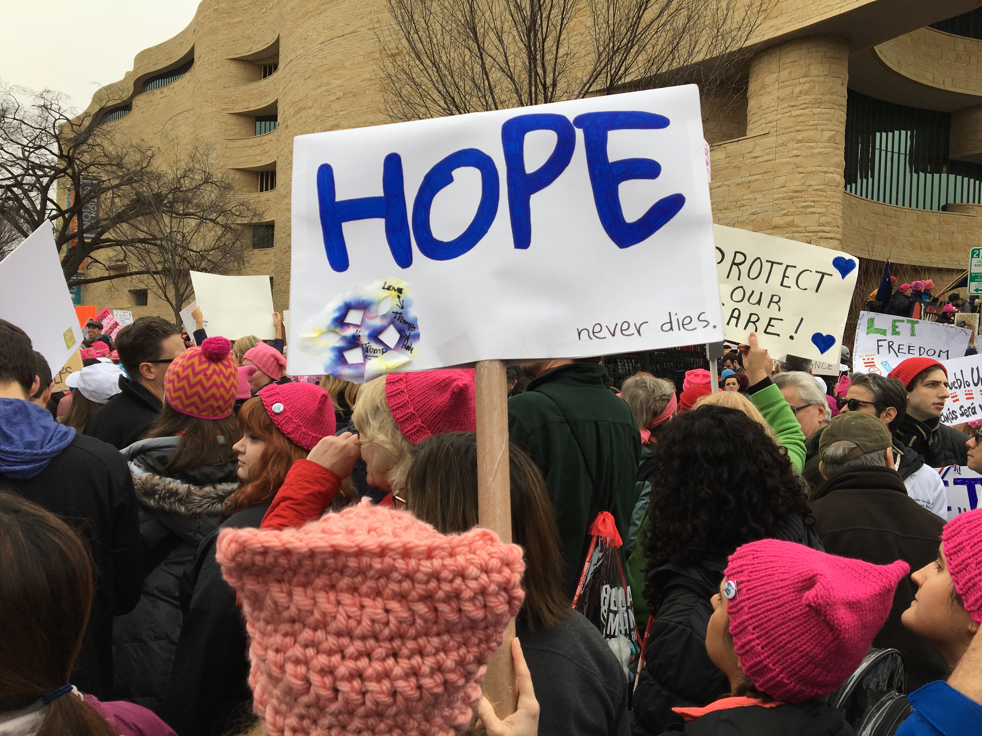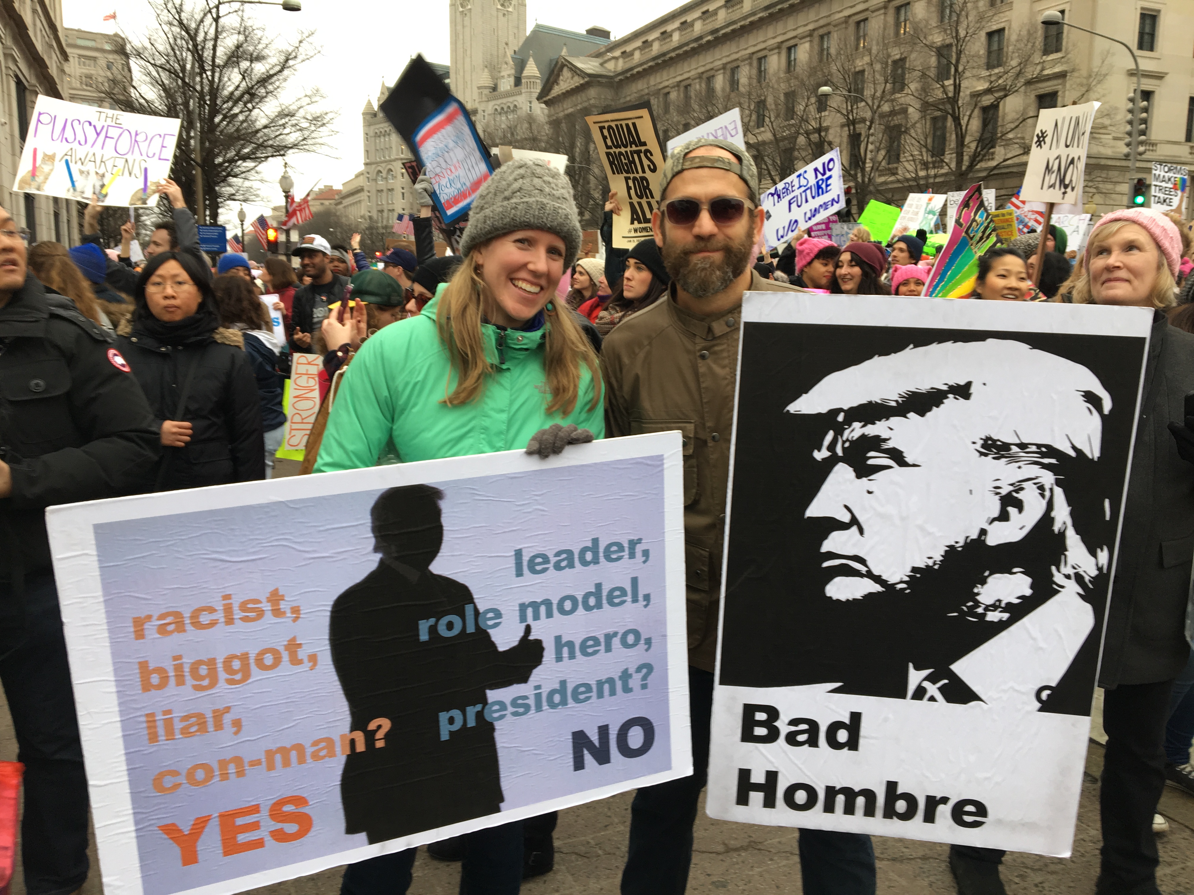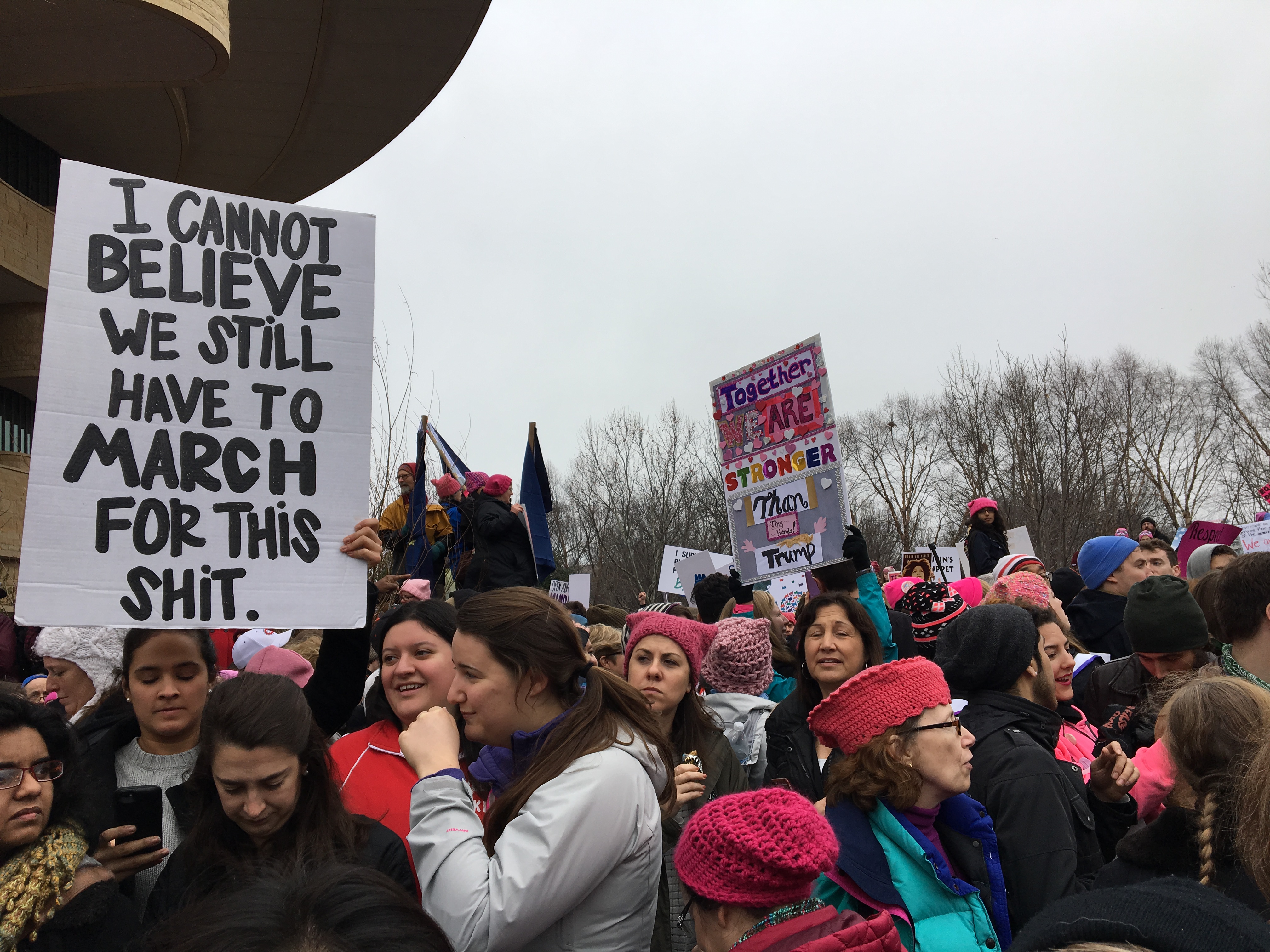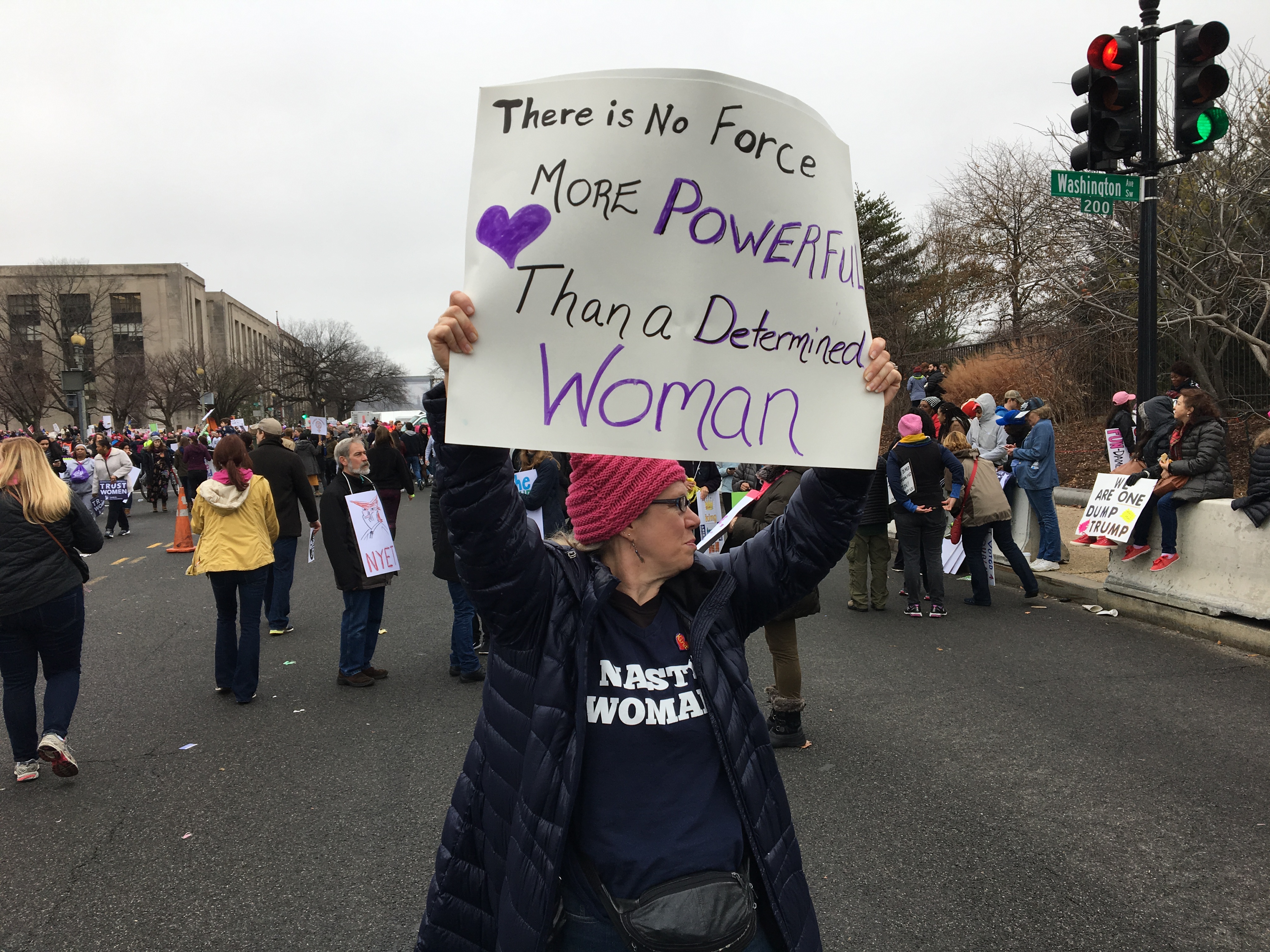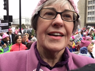 Baker was especially touched by everyone’s positive energy. She also got a good chuckle from some of the clever signs, as she marched all afternoon through thick crowds of more than half a million people.