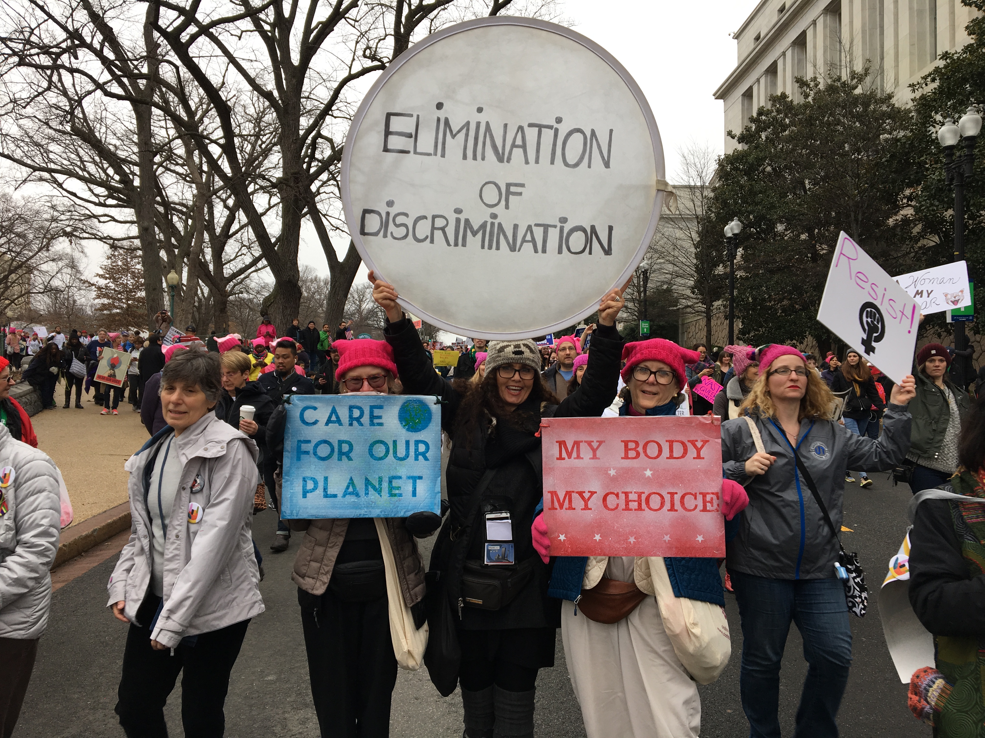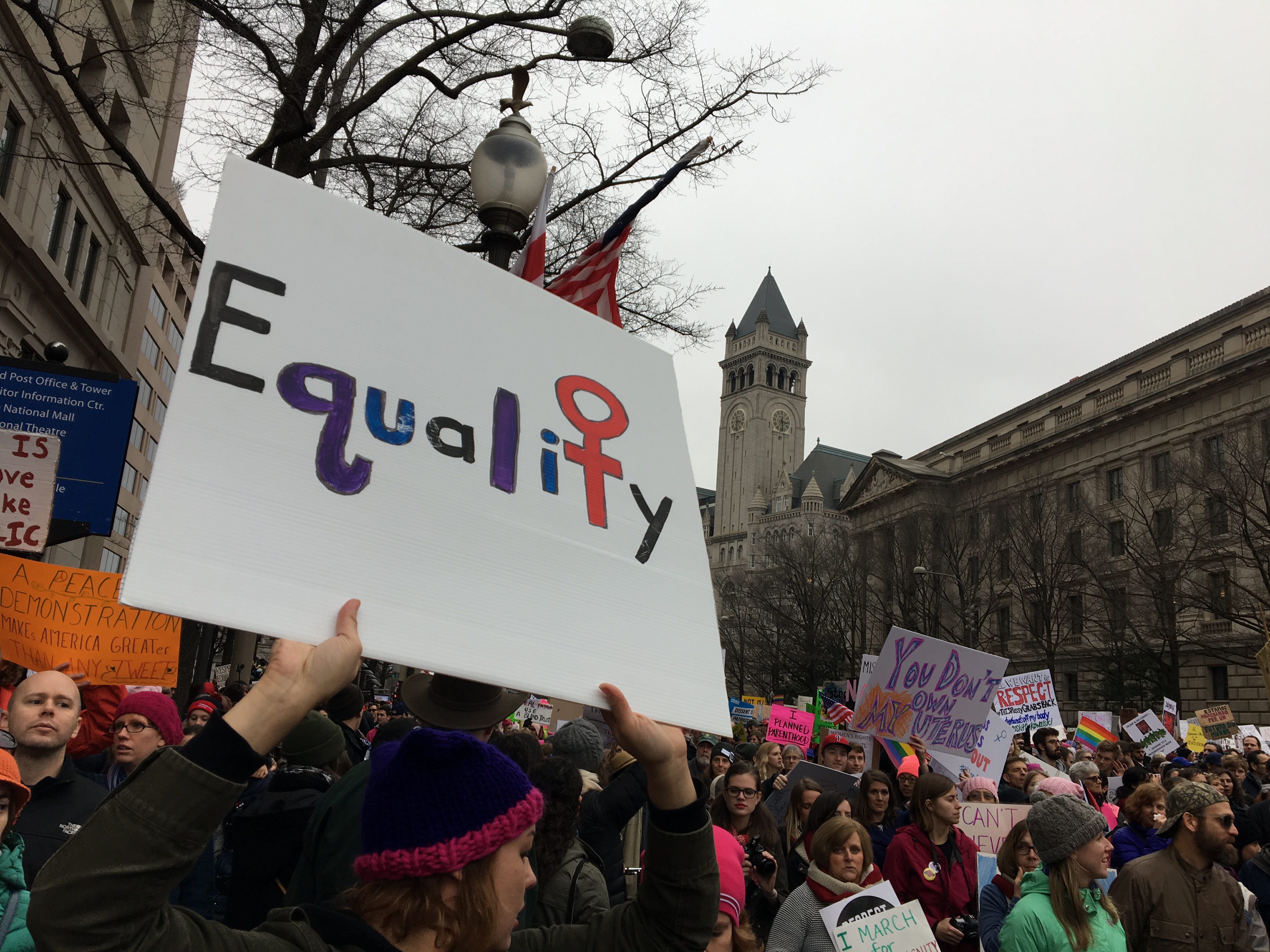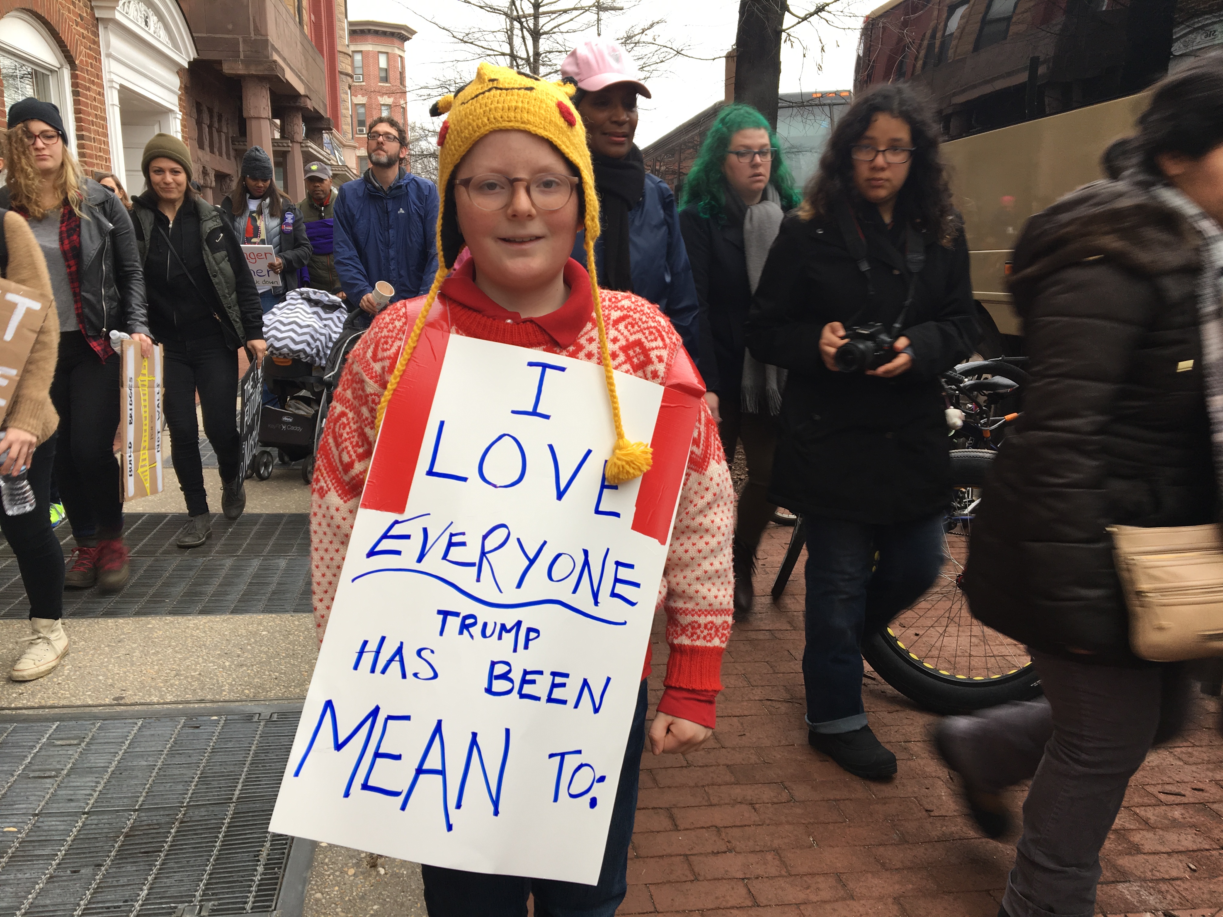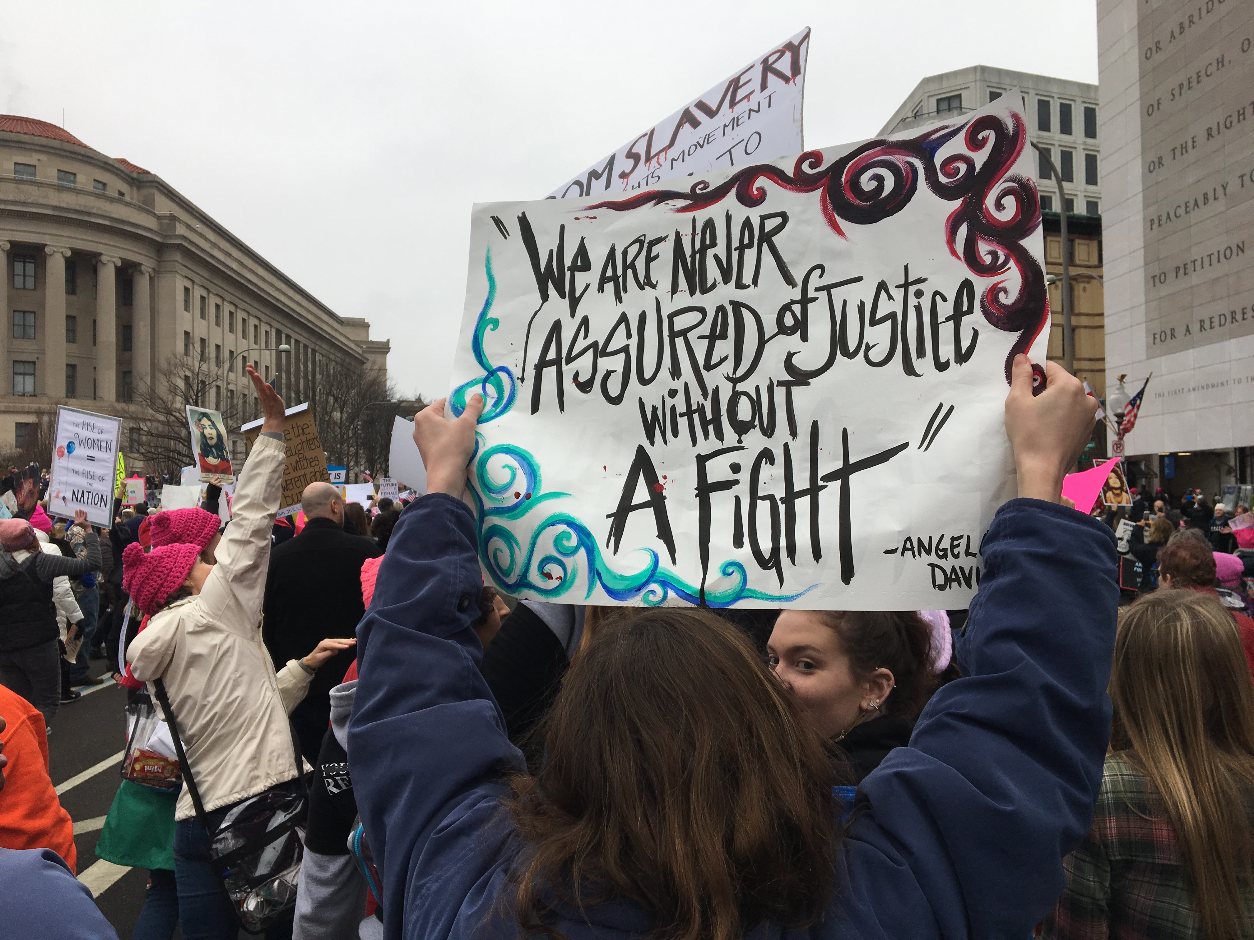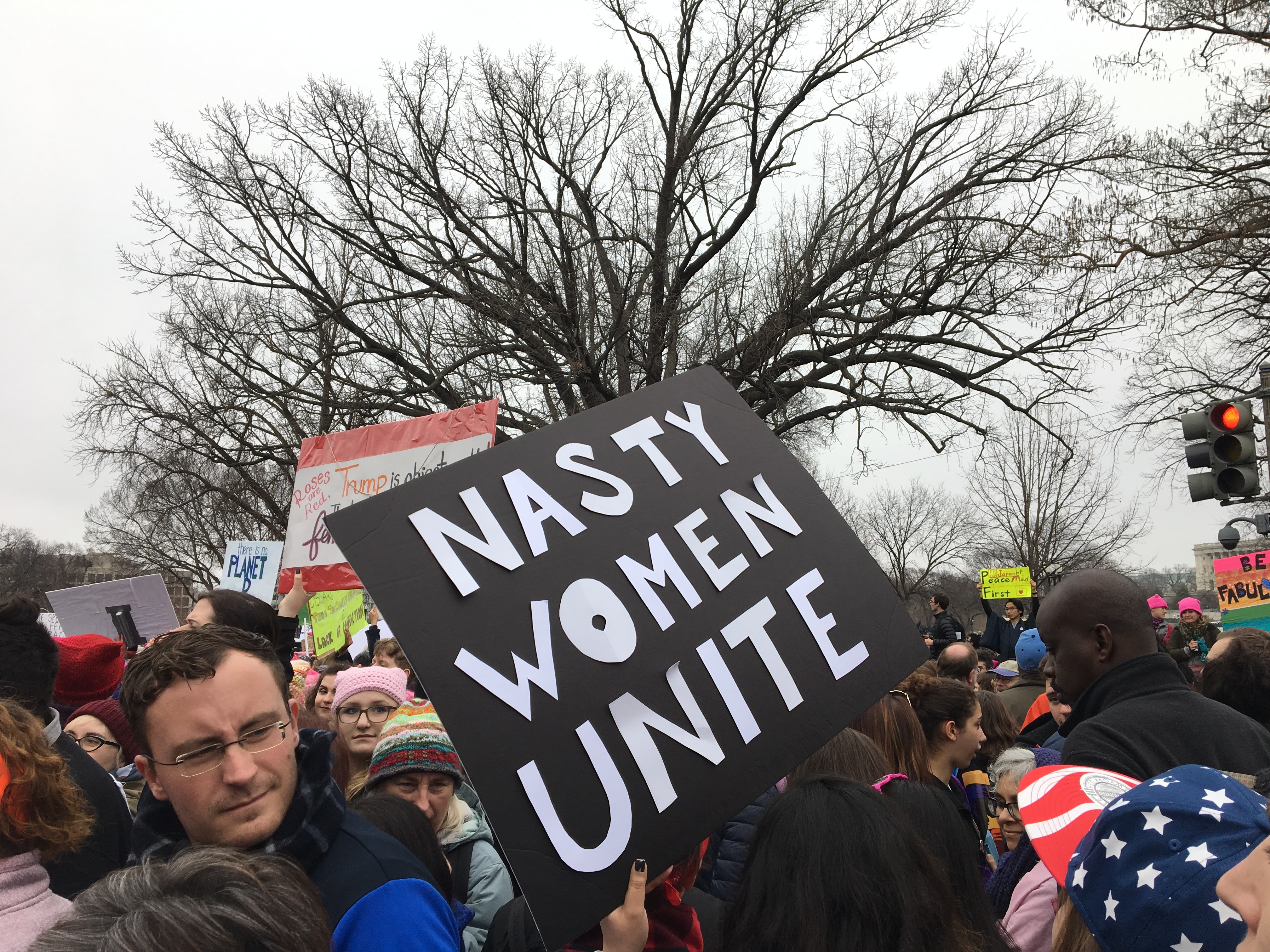 Baker was especially touched by everyone’s positive energy. She also got a good chuckle from some of the clever signs, as she marched all afternoon through thick crowds of more than half a million people.