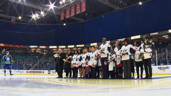 According to organizers, the Blades are the first junior hockey team to hold a citizenship ceremony in the country.