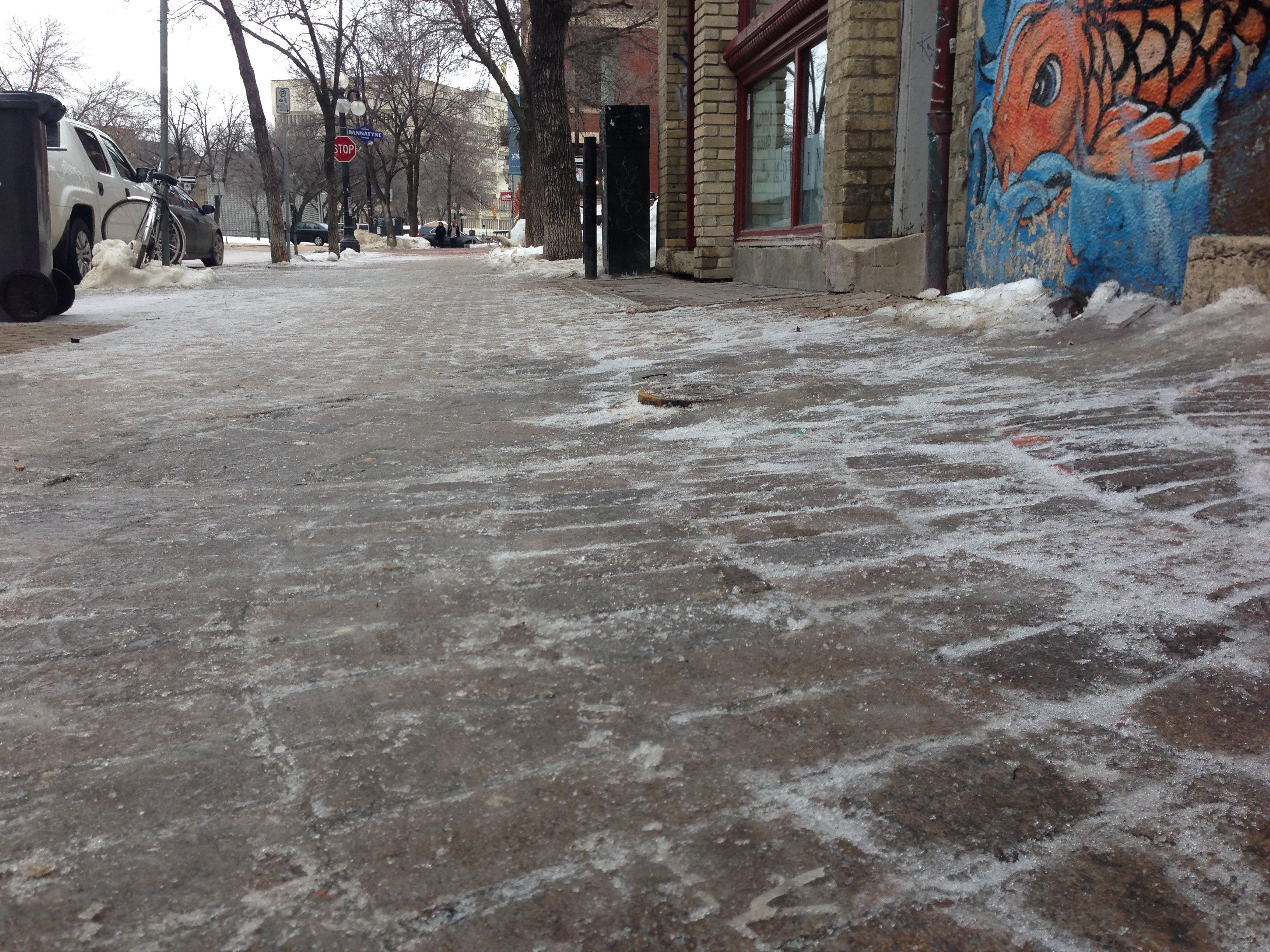 “It’s slippery, it’s really treacherous. You really have to watch where you’re stepping,” Hazel Ostopowich said, who was walking through the Exchange District this morning.