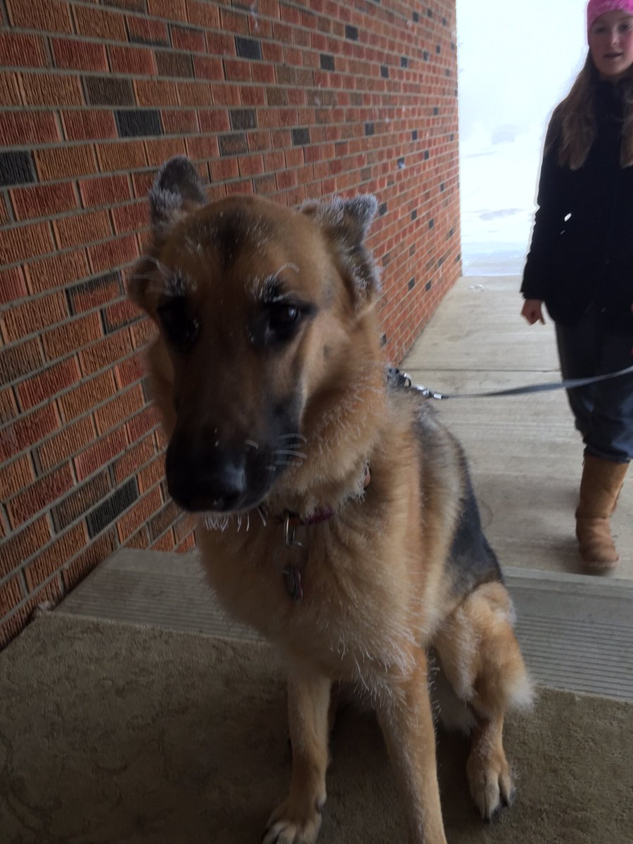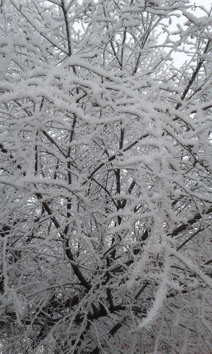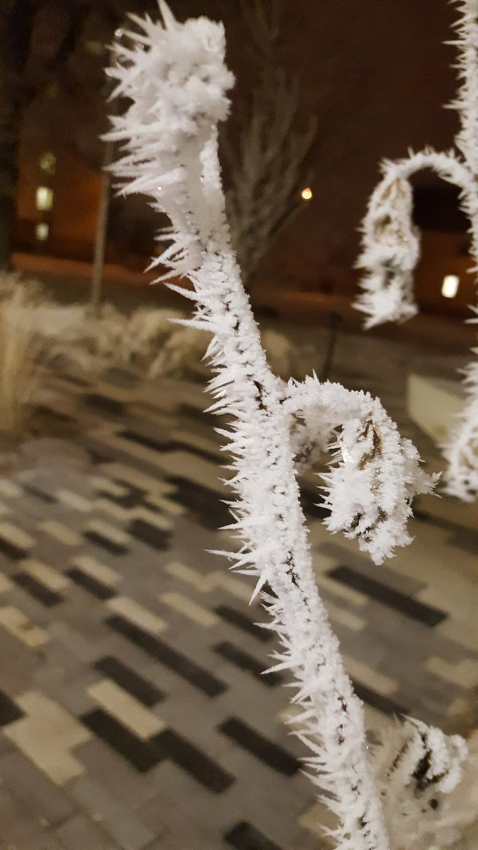 Fences, trees and shrubs aren’t the only surfaces hoar frost can grow on. Stay warm pooches, stay warm.