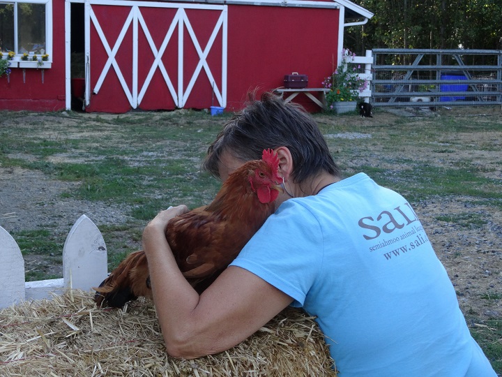 It may be easy for some to tell Louise was a rooster but for SALI this was the first time the organization had rescued one. And Louise didn’t fit the rooster temperament. He was the opposite. Kind, gentle and adored people.