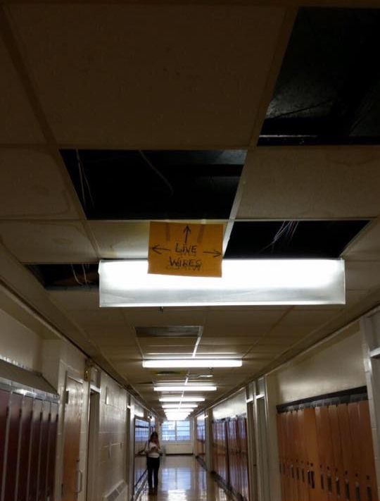 Images show damage from leaky roof at J.L. Ilsley High School in February, 2015: