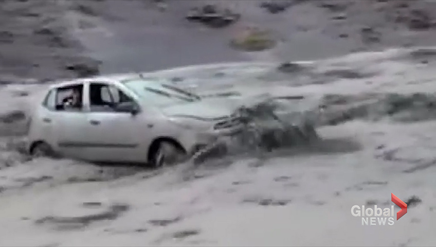 A small car was swept away by a mudslide in southern Peru and sent slamming into a truck on Thursday Jan. 26, leaving three people dead as the country grapples with heavy rains and widespread flooding.