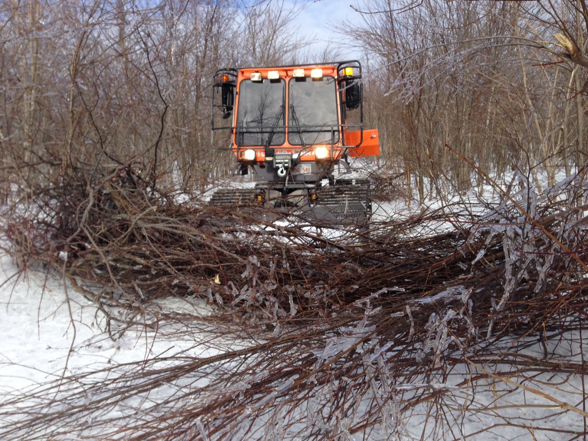 It’s been almost a week since the ice storm and he said trees and branches weighed down by thick ice are still blocking the path of snowmobilers.