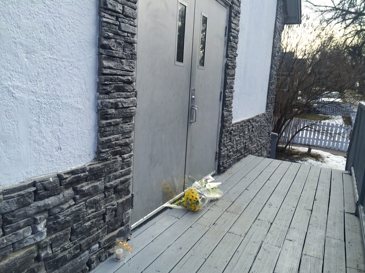 Flags at Lethbridge City Hall were flying at half-mast Monday while people left flowers and notes of support at the front doors at the local Muslim centre.