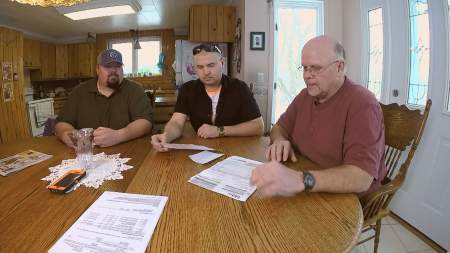 Robin Milne looks over paper work and how much he is being forced to pay at his home in Sprague, Manitoba. File / Global News
