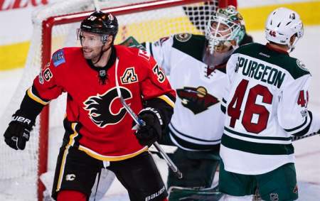 Monahan scored his second of the game and team-leading 18th of the season at 6:19 of the third when he took a pass from Dennis Wideman and snapped a shot to the top corner over the left shoulder of Dubnyk, who was screened by Brouwer on the play.