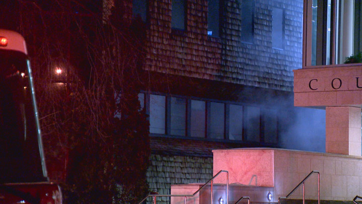 The fire department received a 911 call just after 6:30 a.m. on Thursday for a report of a fire outside a building in the 500-block of Spadina Crescent.