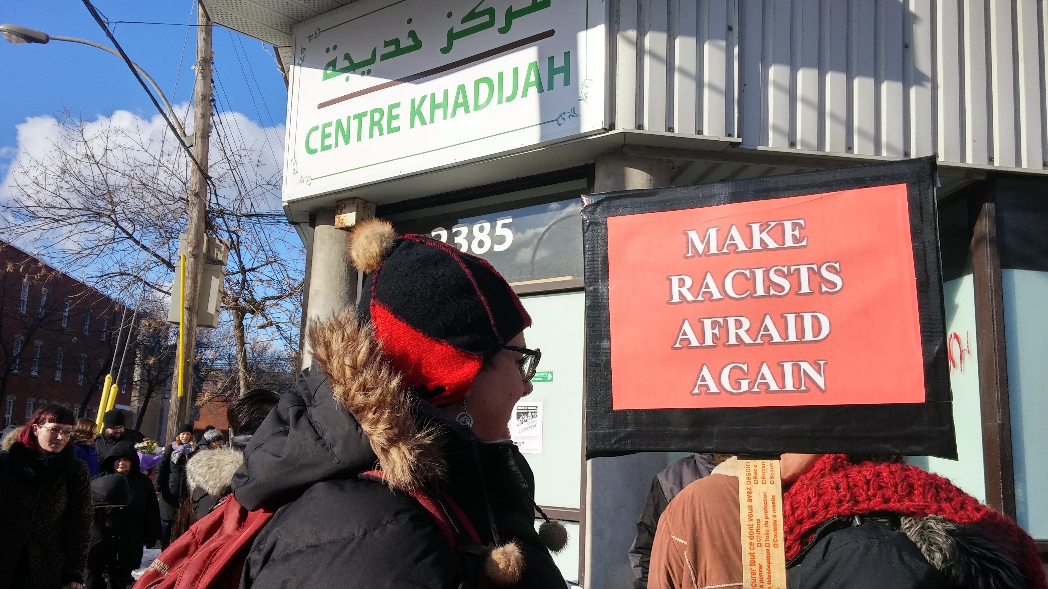 The minus 15-degree weather hasn’t stopped a group of around 50 Pointe-Saint-Charles residents from rallying around the Khadijah Mosque.