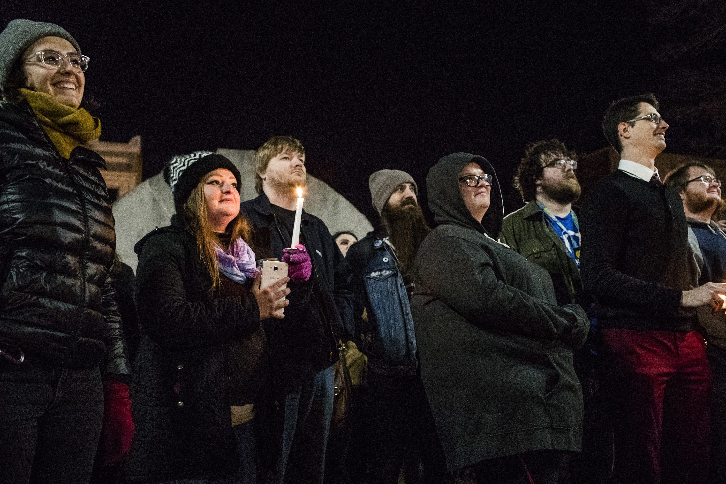 You don’t usually find smiling faces at a vigil.