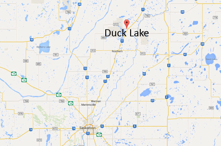 Duck Lake is approximately 85 kilometres north of Saskatoon.