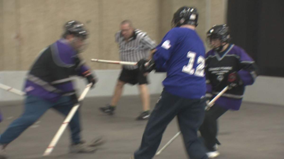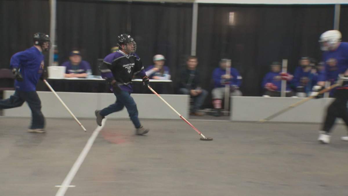 There are five floor hockey teams from the Edmonton area participating and the ages of the players ranges from 10 to 78.