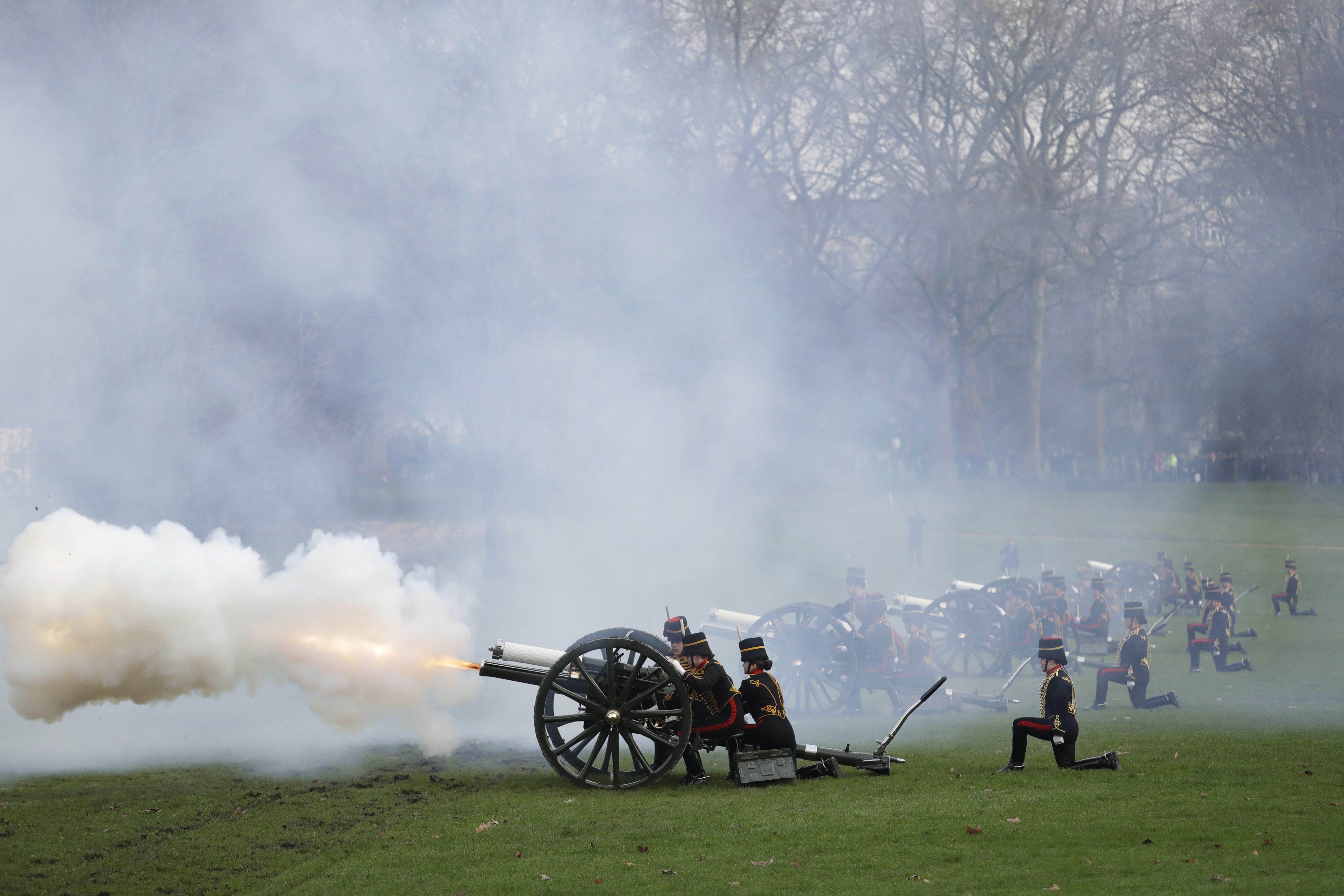 Monday’s Sapphire Jubilee is being marked with a 41-gun royal salute in London’s Green Park and at the Tower of London.