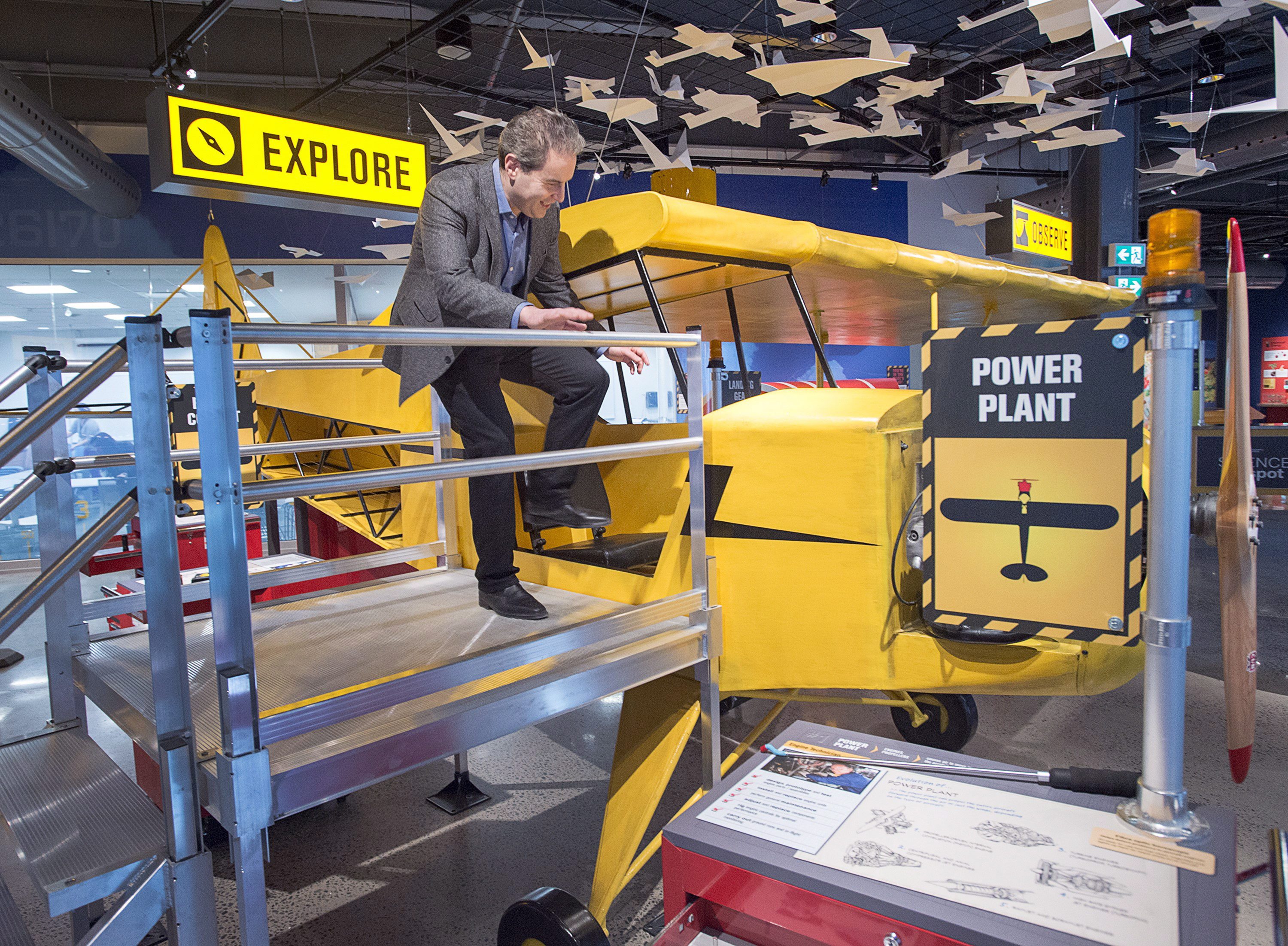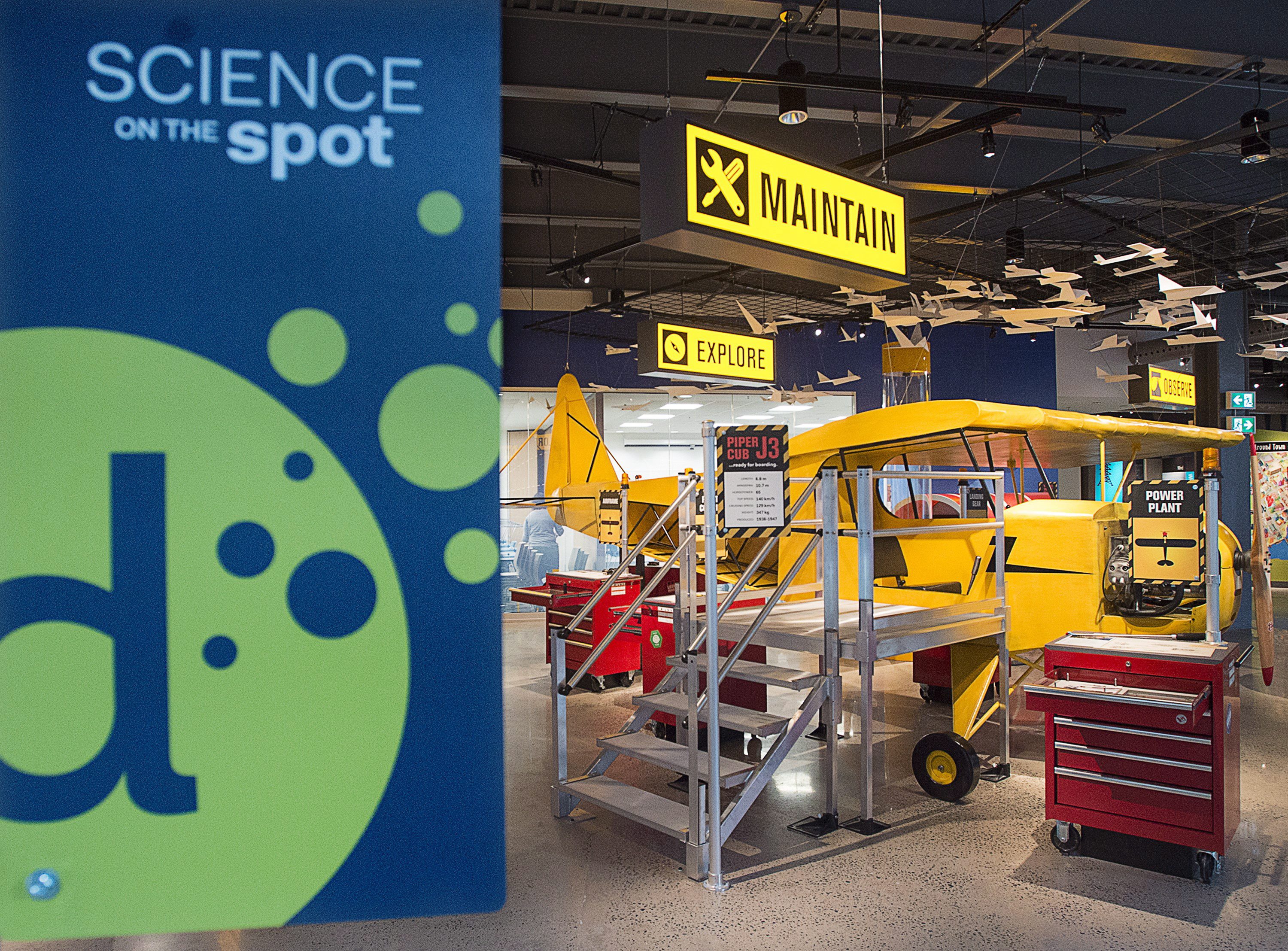 On the second floor guests are greeted by a life-size yellow Piper J-3 Cub, a lightweight aircraft first produced in 1938. It’s part of three themed galleries: flight, health and energy. Each section features interactive and hands-on activities that teach about the science behind our society, such as harnessing tidal power and human anatomy.