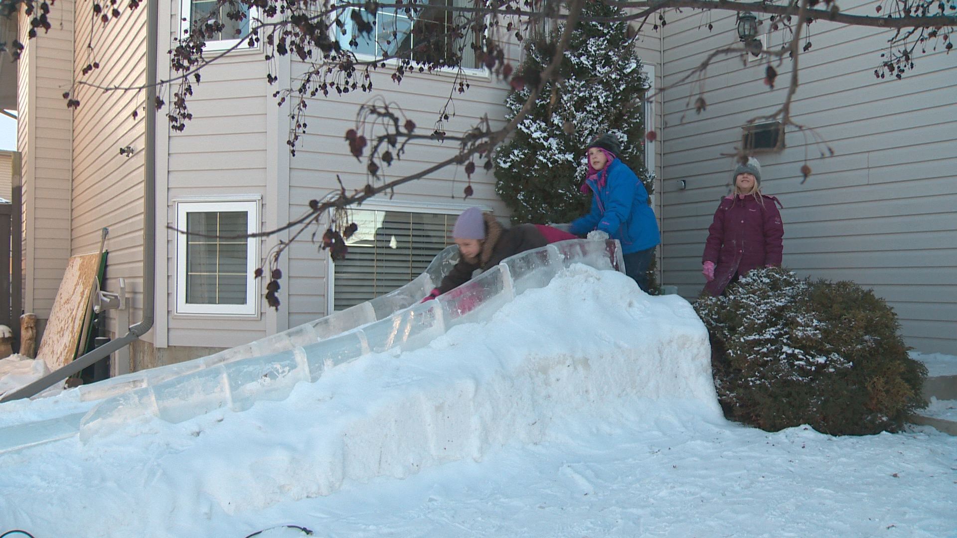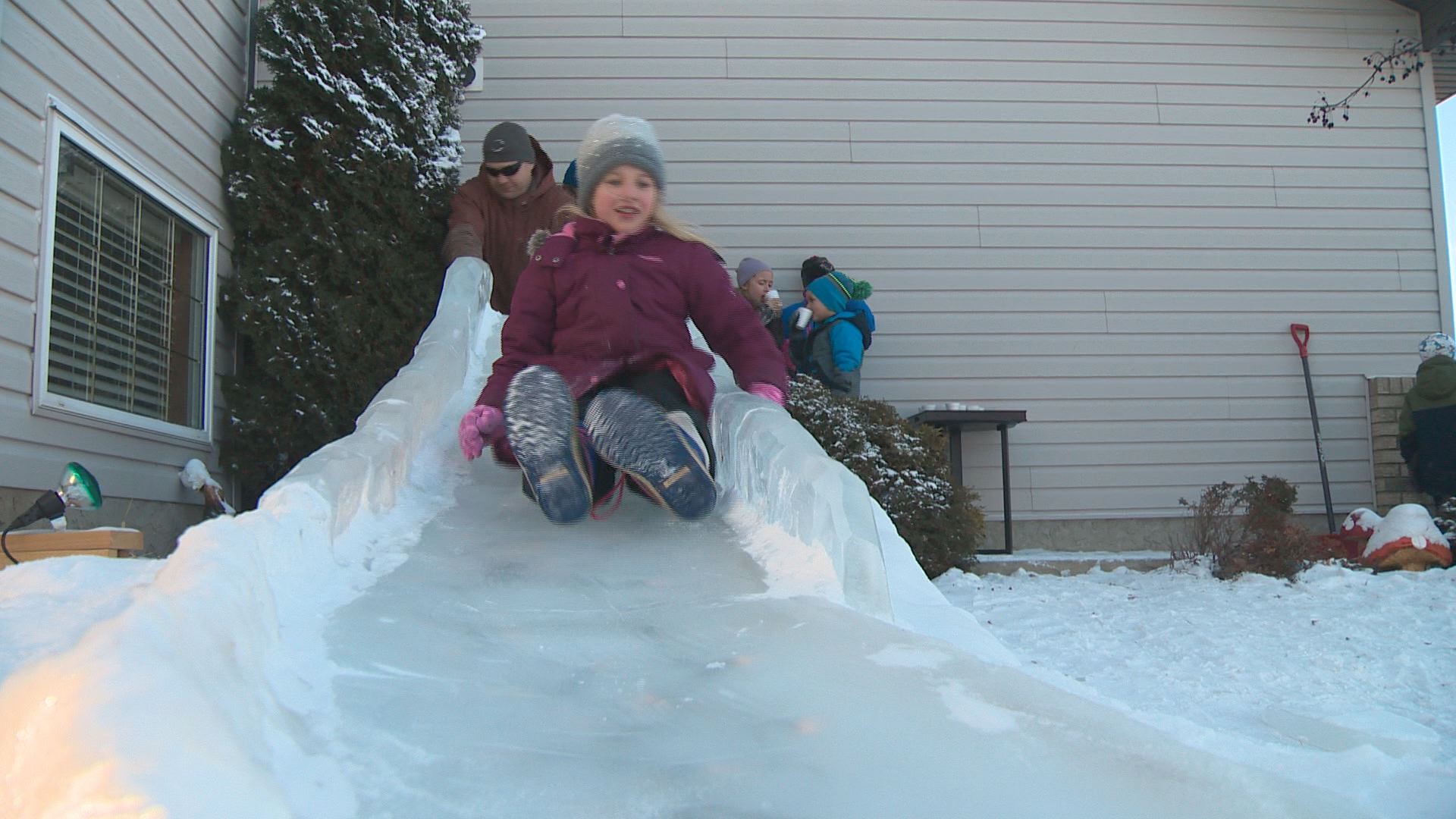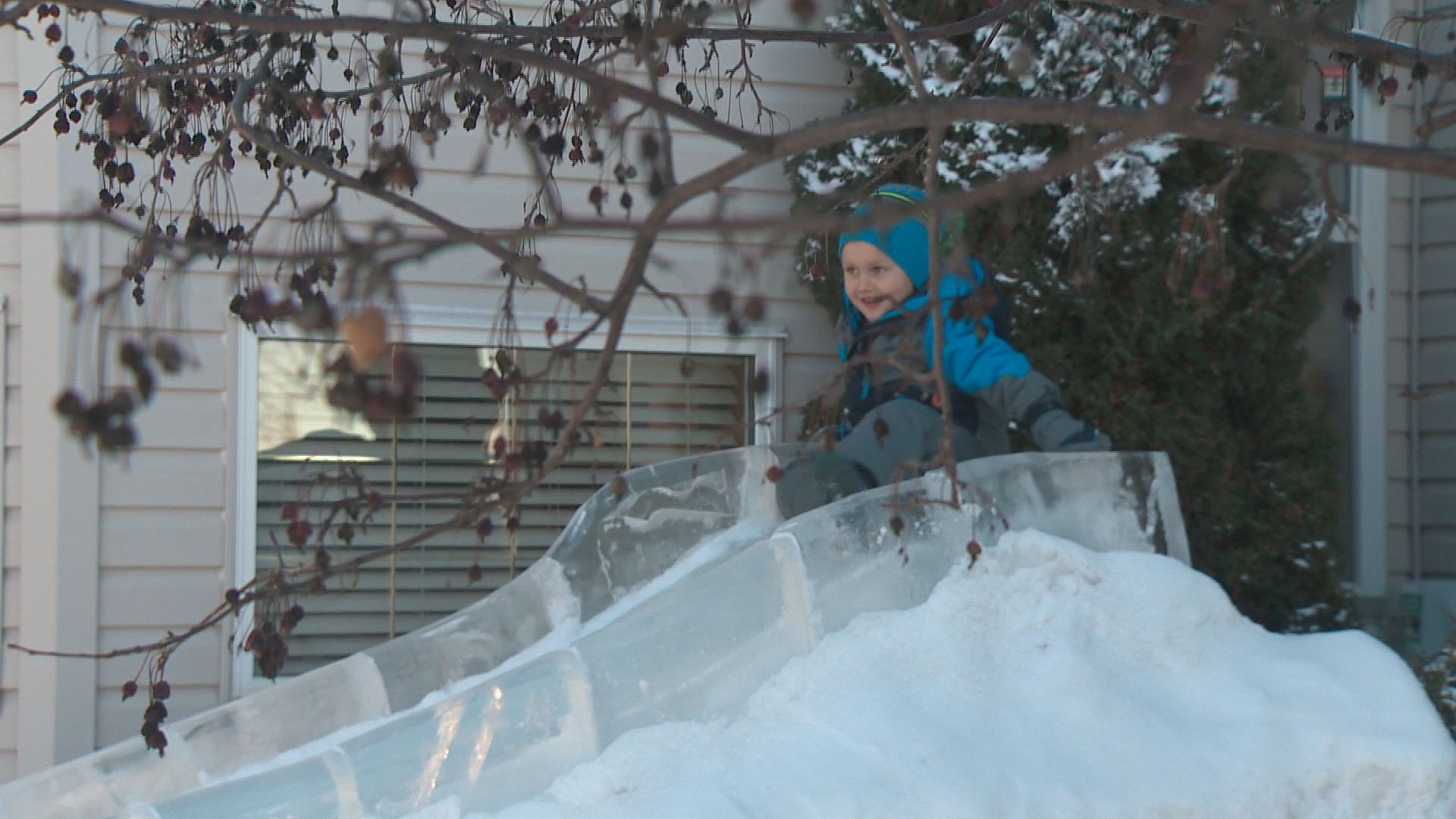 “It’s for the kids,” Davies said. “Every year, I harvest ice from jobs throughout the winter. This year, it just happened to turn into a slide.”
