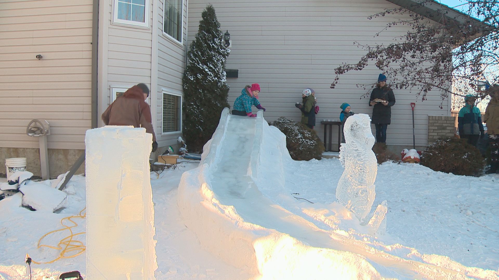 “It’s what I do and I love doing it so much,” he said. “Usually ice carving takes me away, always, so to be able to work at home with the kids here and the neighbourhood… I really enjoy it.”