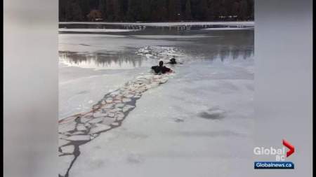 A Vancouver police officer is being hailed as a hero on social media for saving a dog from the frigid waters of Lost Lagoon on Friday.