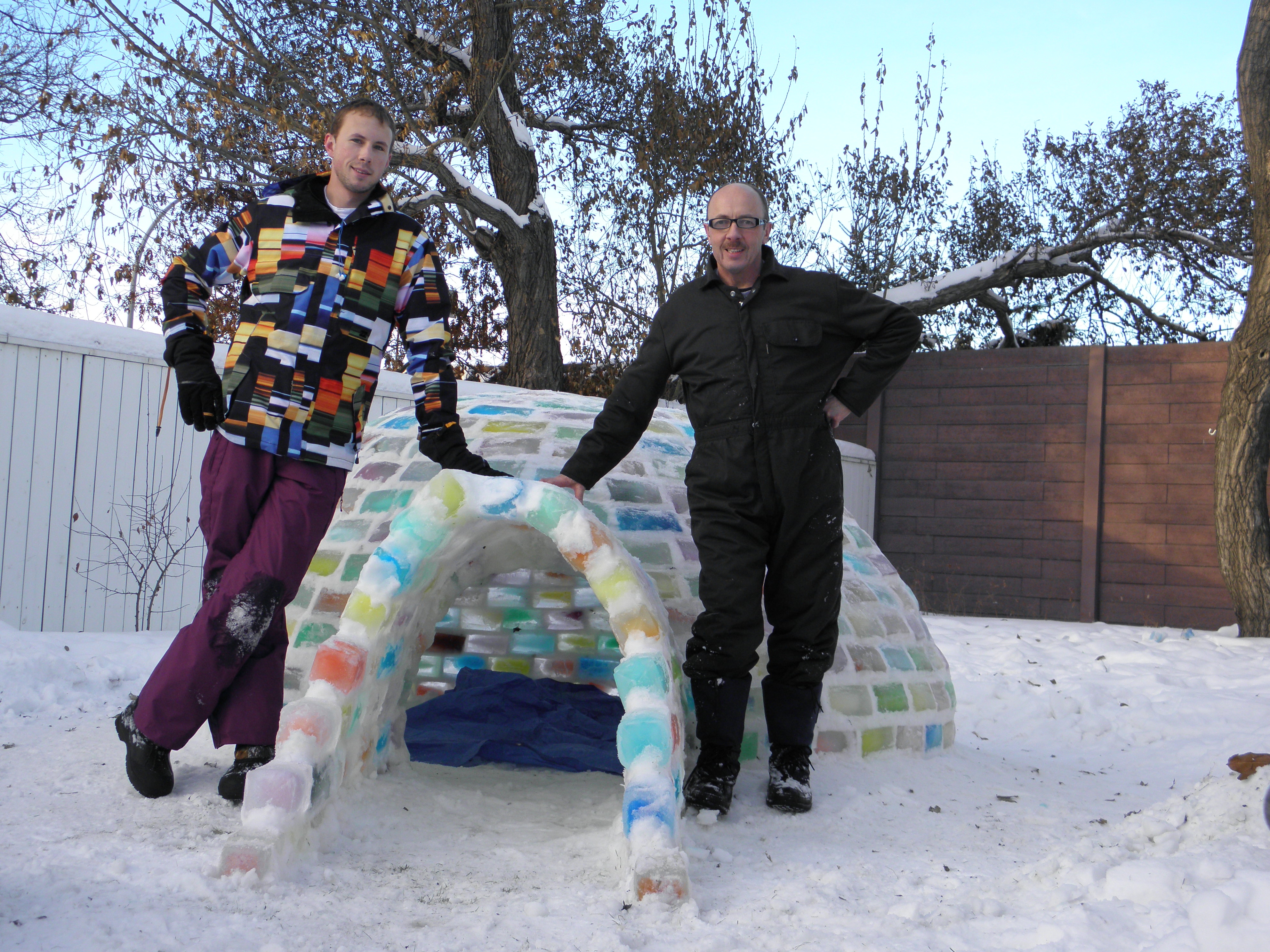 Preparation on the igloo began months ago. Anticipating the couple’s visit, Burton started collecting milk cartons in October, filling them with coloured water and freezing them to make ice blocks.