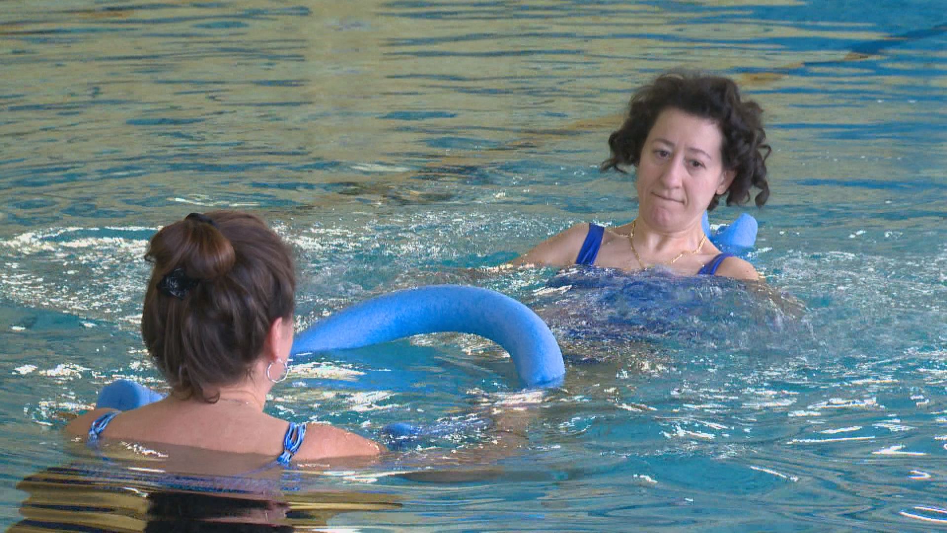 “We started her off in a life-jacket, which was rather uncomfortable for Ruba and would ride up around her neck,” explained Cyndi Ellis, Zoughaib’s support worker. “So I came up with the noodle idea and she uses her core strength to keep herself upright.”
