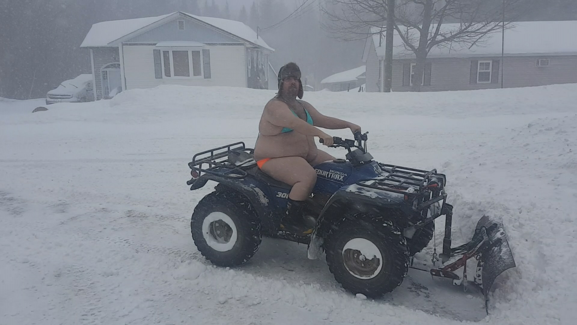 It’s not the most conventional way to clear snow after a blizzard brought more than 40 centimetres to New Brunswick, but one Minto, N.B. man took snow plowing to almost bare bones.