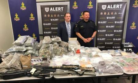 ALERT made the announcement on Tuesday, saying they found “significant quantities” of illegal drugs, firearms and cash while searching four homes on Feb. 11.