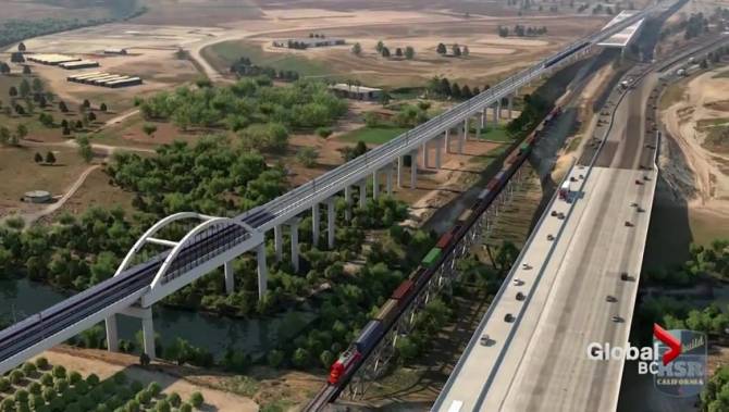 The U.S.’s high-speed rail authority has mapped out a possible route that would follow the I-5 to Highway 99 in B.C. and terminate near Vancouver International Airport in Richmond or near a SkyTrain station in Surrey.