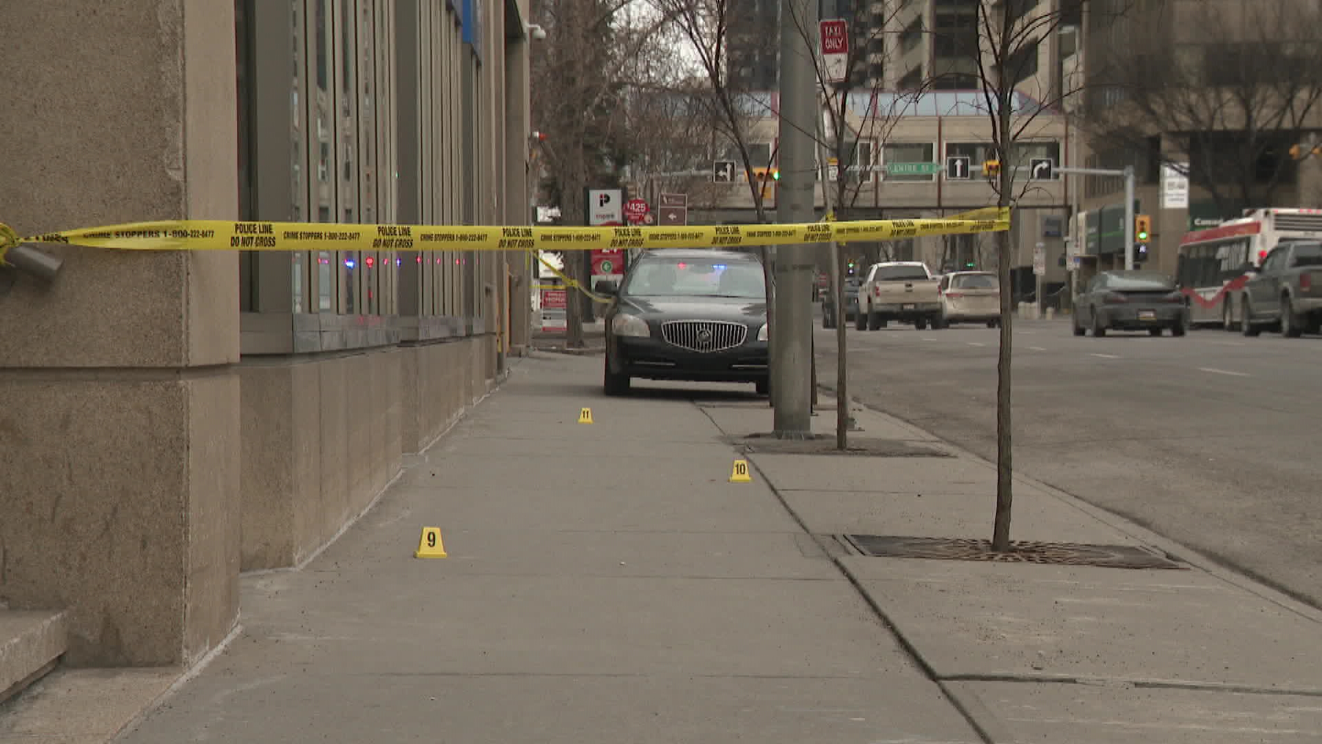 Police continue to investigate a scene in downtown Calgary after reports of gunfire Saturday morning.