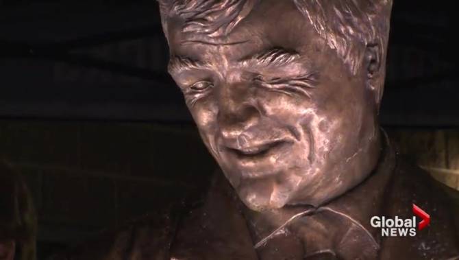 The statue also comes complete with “Pat’s Bench” — a facsimile of the spot where Quinn conversed with Canadian Olympic athletes outside of Canada House in Salt Lake City during the 2002 Winter Olympics.