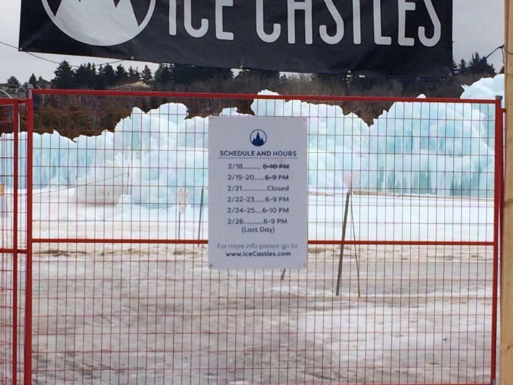 The ice castle in Hawrelak Park will be closed for the next few days after warm weather and rain over the weekend.