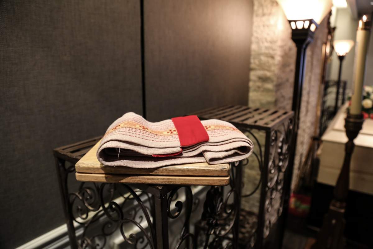 Rows of chairs at the funeral home sit empty, with tissue boxes ready and waiting for family and friends to arrive.