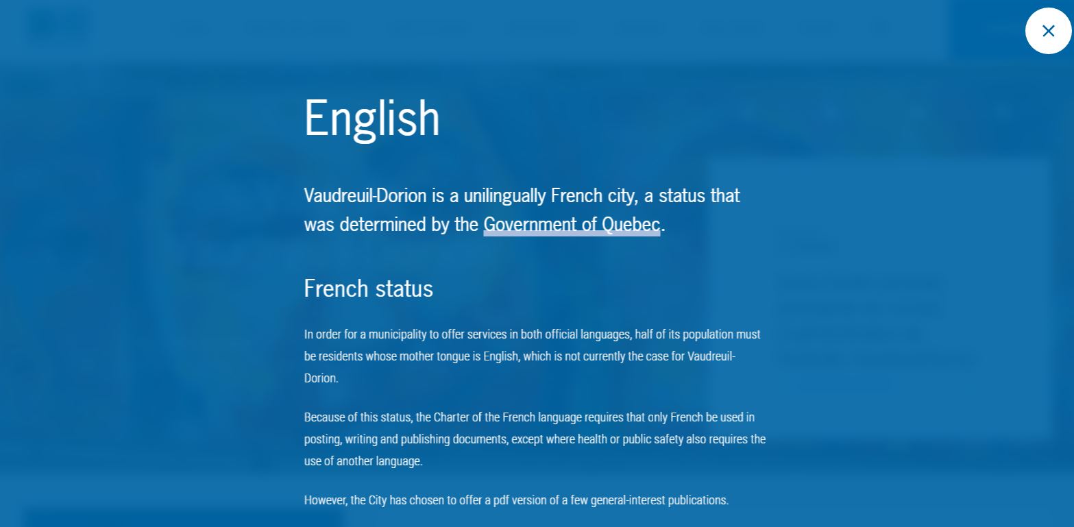 “Vaudreuil-Dorion is a unilingual French city, a status that was determined by the government of Quebec.”