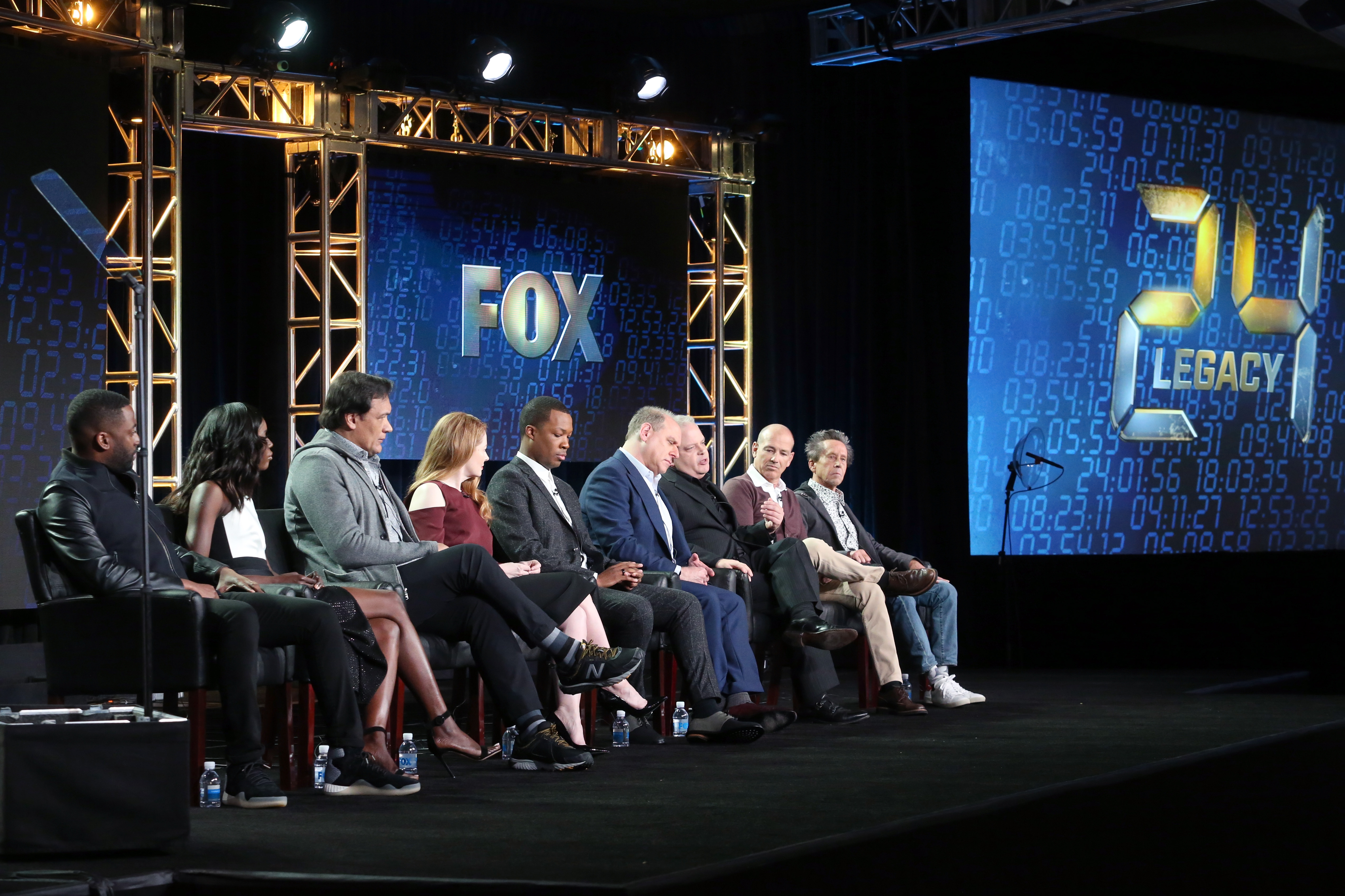 Actors Ashley Thomas, Anna Diop, Jimmy Smits, Miranda Otto, and Corey Hawkins, Co-creators/Executive producers Evan Katz and Manny Coto, and Executive producers Howard Gordon and Brian Grazer of the television show '24: Legacy' speak onstage during the FOX portion of the 2017 Winter Television Critics Association Press Tour at Langham Hotel on January 11, 2017 in Pasadena, California. (Photo by Frederick M. Brown/Getty Images)