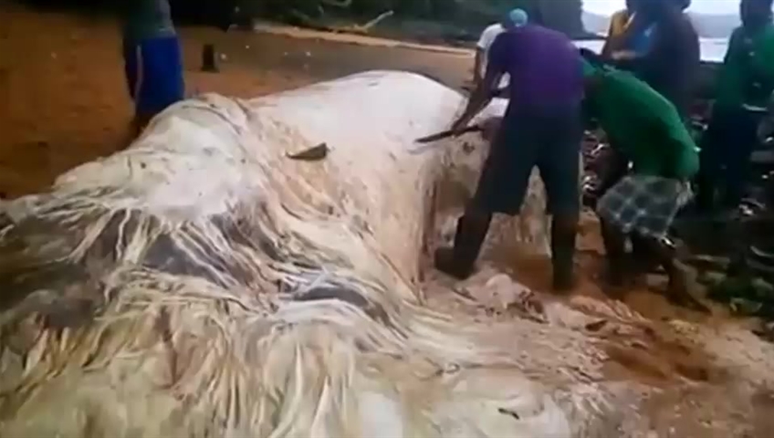 The remains of a large sea creature washed up on a beach in the Dinagat Islands, Philippines on Wednesday afternoon.