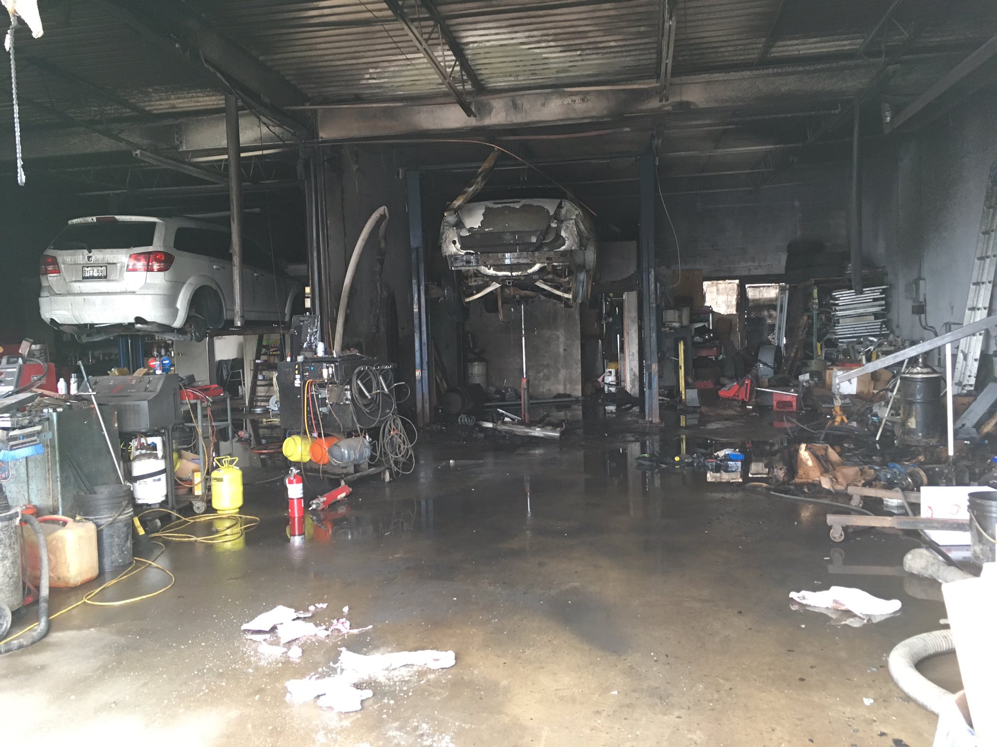 Britton says there were two mechanics in the shop at the time of the blaze; the man who suffered injuries refused an ambulance, but was advised to seek medical attention.