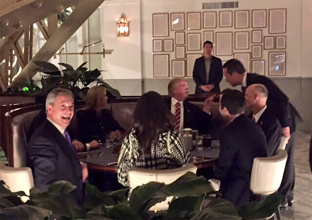 Entitled “Dinner with The Donald,” Farage posted a picture of himself smiling at a camera, with Trump and four other people around a table in a photo which gave the location as the Trump International Hotel.