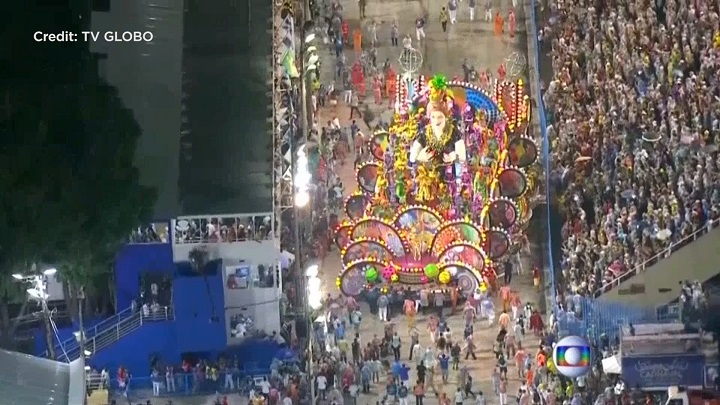 Minutes earlier a smaller incident happened with samba school Mocidade Independente, when a platform detached from their fourth float and dropped a reveller to the ground, but the samba school said she was not injured.