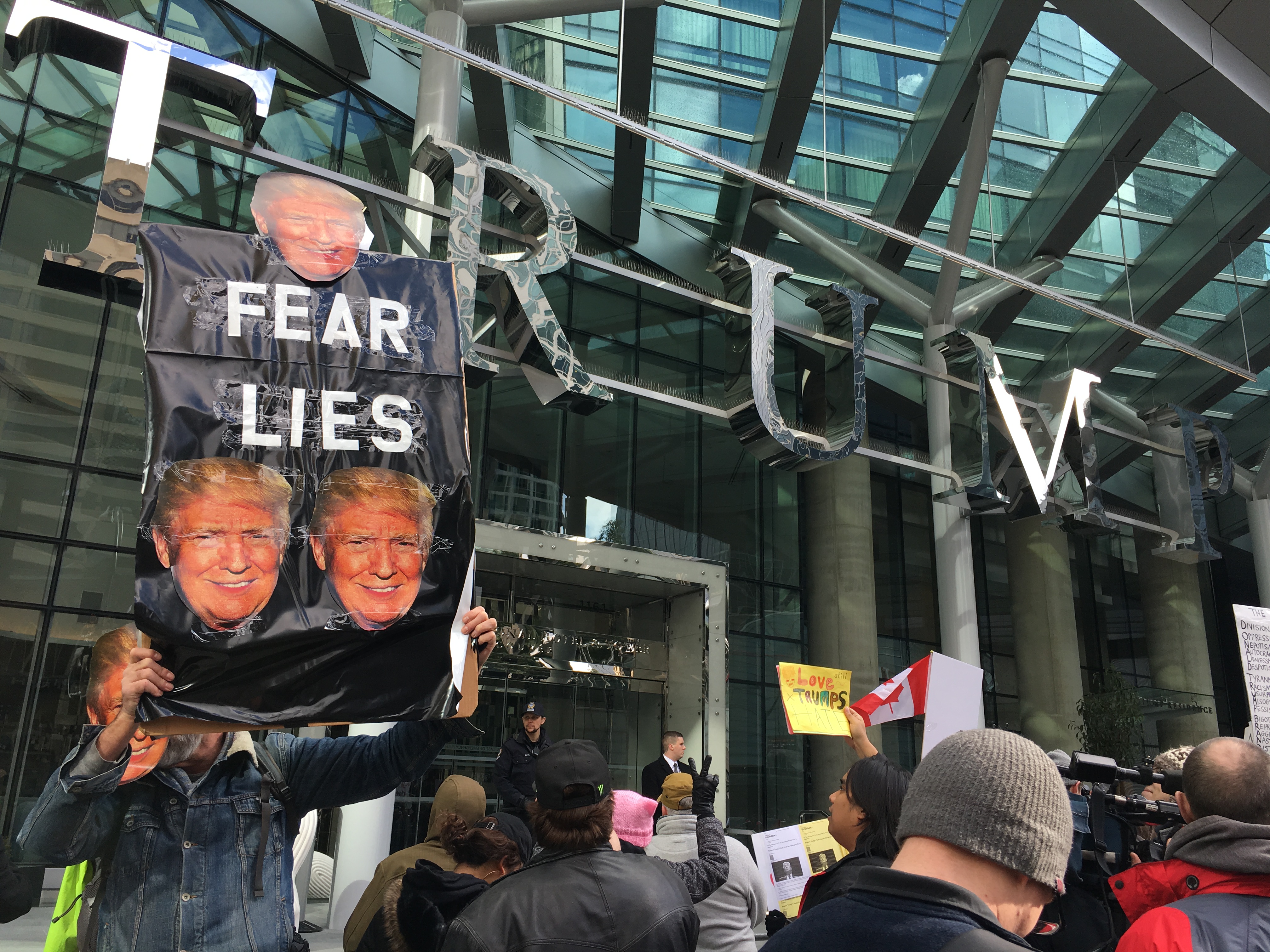 WATCH: There were protestors in front of the Vancouver Trump Tower for its grand opening, but not as many as expected