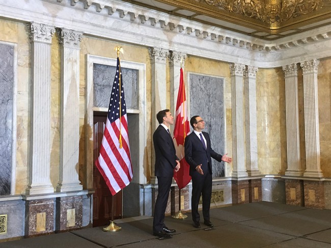 He was greeted at the U.S. Treasury right beside the White House by his counterpart, Steve Mnuchin, who welcomed Morneau as his first foreign visitor since taking office.