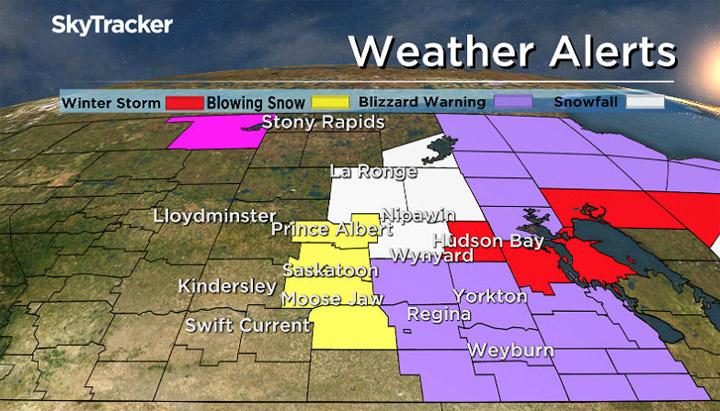 A blizzard warning is in place for Regina, Estevan, Yorkton, Kamsack, Humboldt and the surrounding areas.
