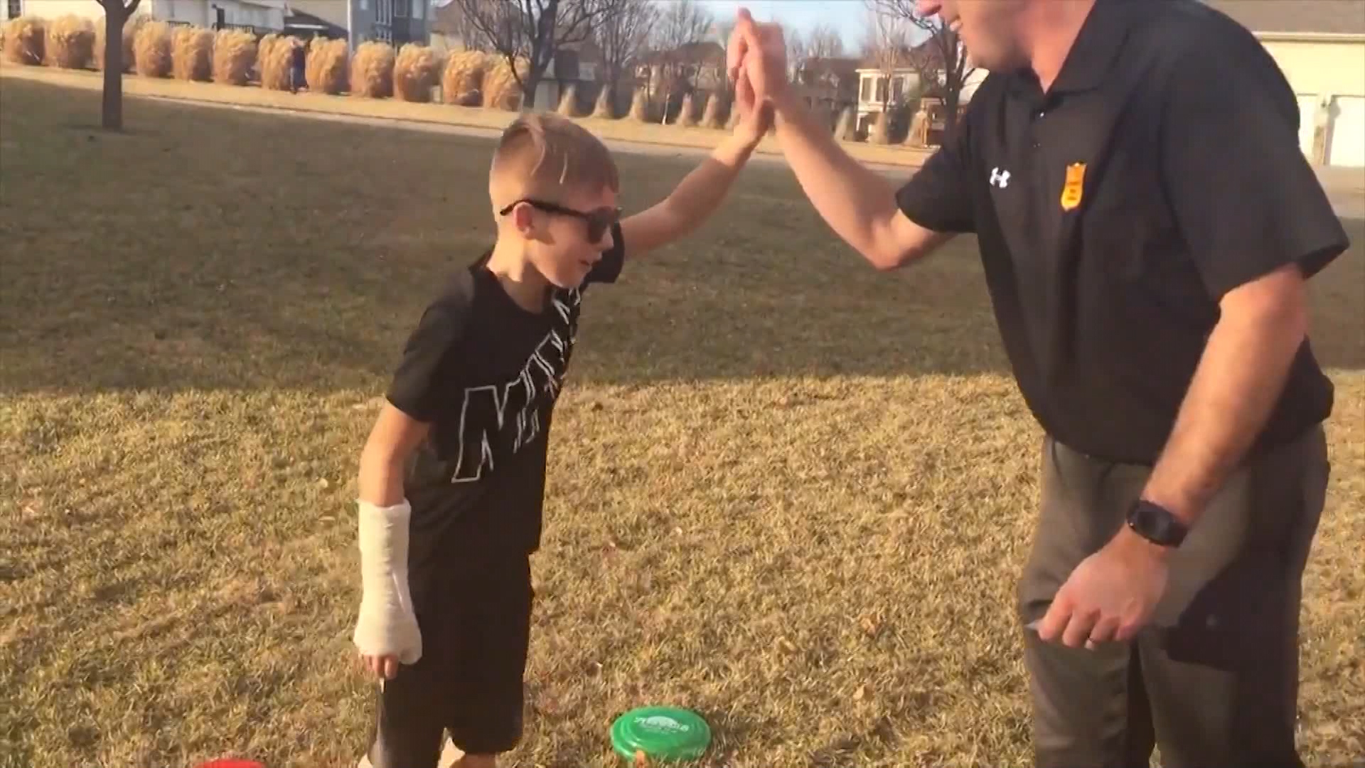 In the home video, Cayson can be seen excitedly naming all the colours of the Frisbees he had laid down on the grass.