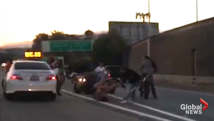 Bdriver after surrounding his vehicle on a San Francisco freeway this week.