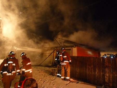 Firefighters arrived to find the fire burning through the roof of the garage.