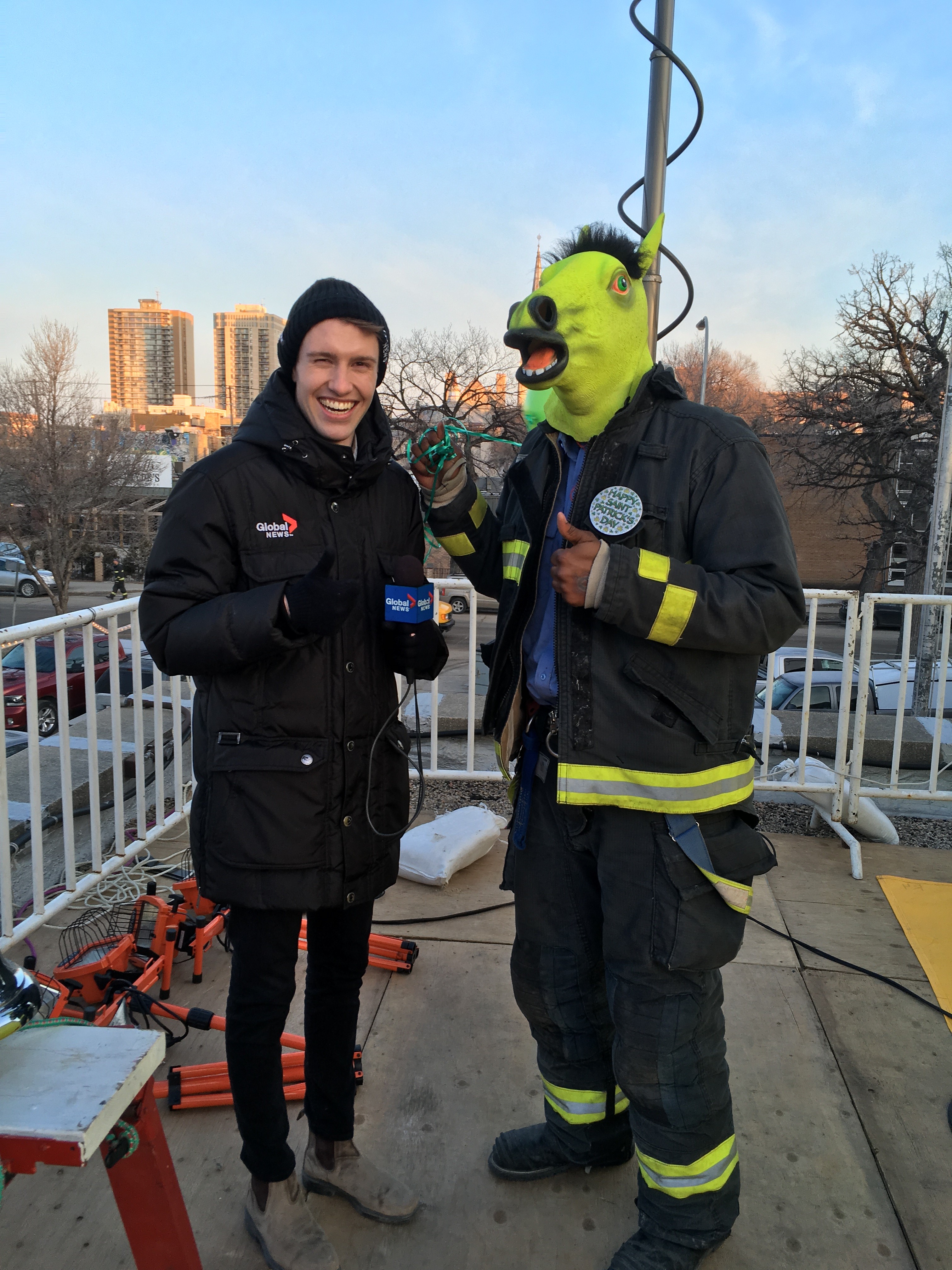 Global’s Timm Bruch joined the campers on the roof early Wednesday morning. The crew was up exercising doing squats on the roof trying to stay warm.