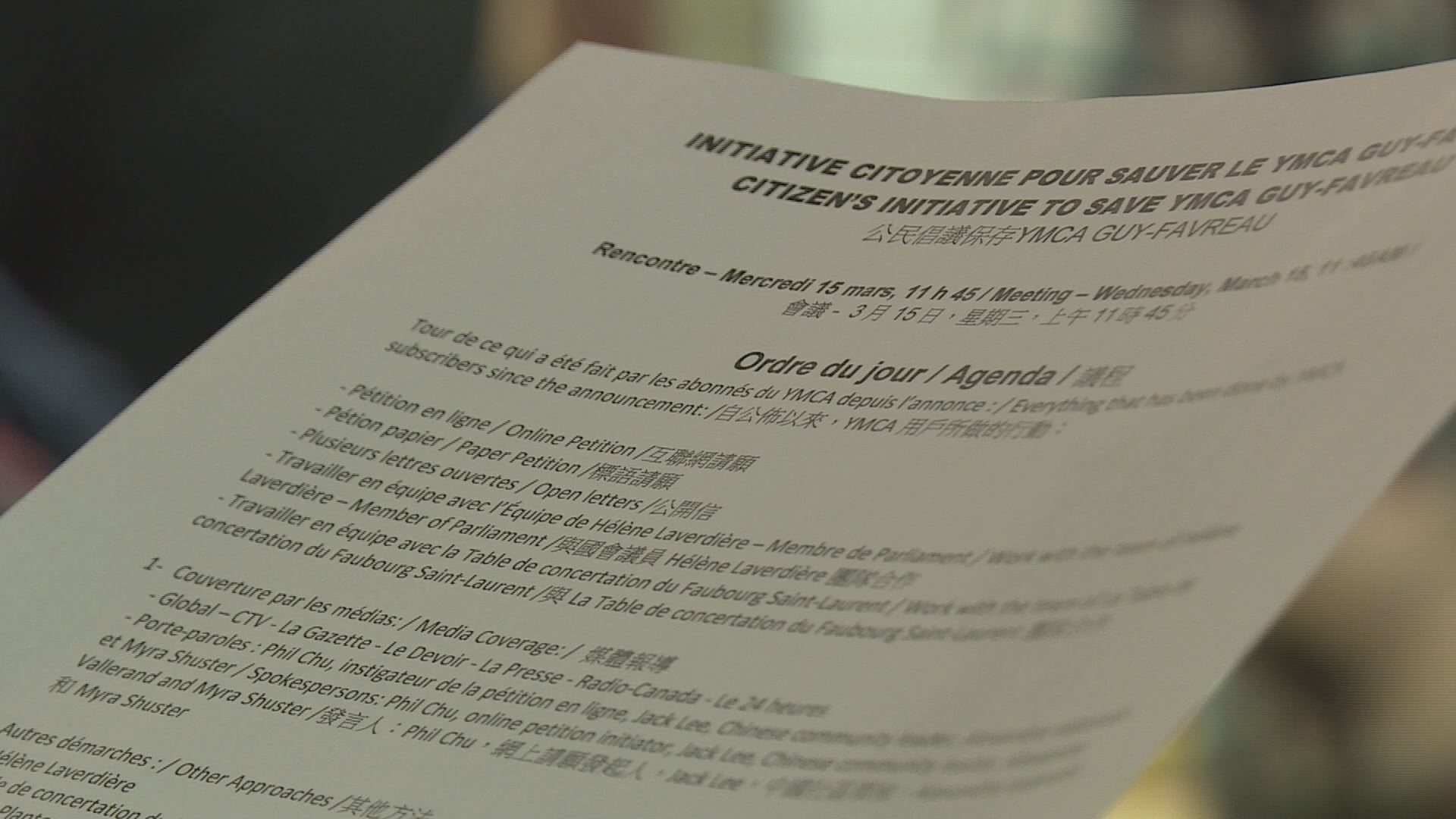 Volunteer Phil Chu, who started an online petition to save the YMCA, said Montreal Opposition leader Valerie Plante supports the fight to keep the centre open.