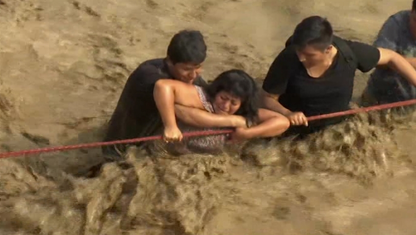 In one of the more dramatic incidents, stunned residents watched and took out cellphone cameras as a woman escaped after being swept into an avalanche of mud, wood debris and farm animals about 53 kilometres (32 miles) south of downtown Lima.