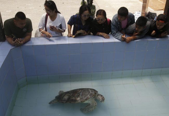 BANGKOK – Tourists in eastern Thailand used to toss coins at a green sea turtle that lived in a pond in eastern Thailand, wishing for luck and longevity. But swallowing the shiny tidbits turned out to be a death sentence for the reptile.